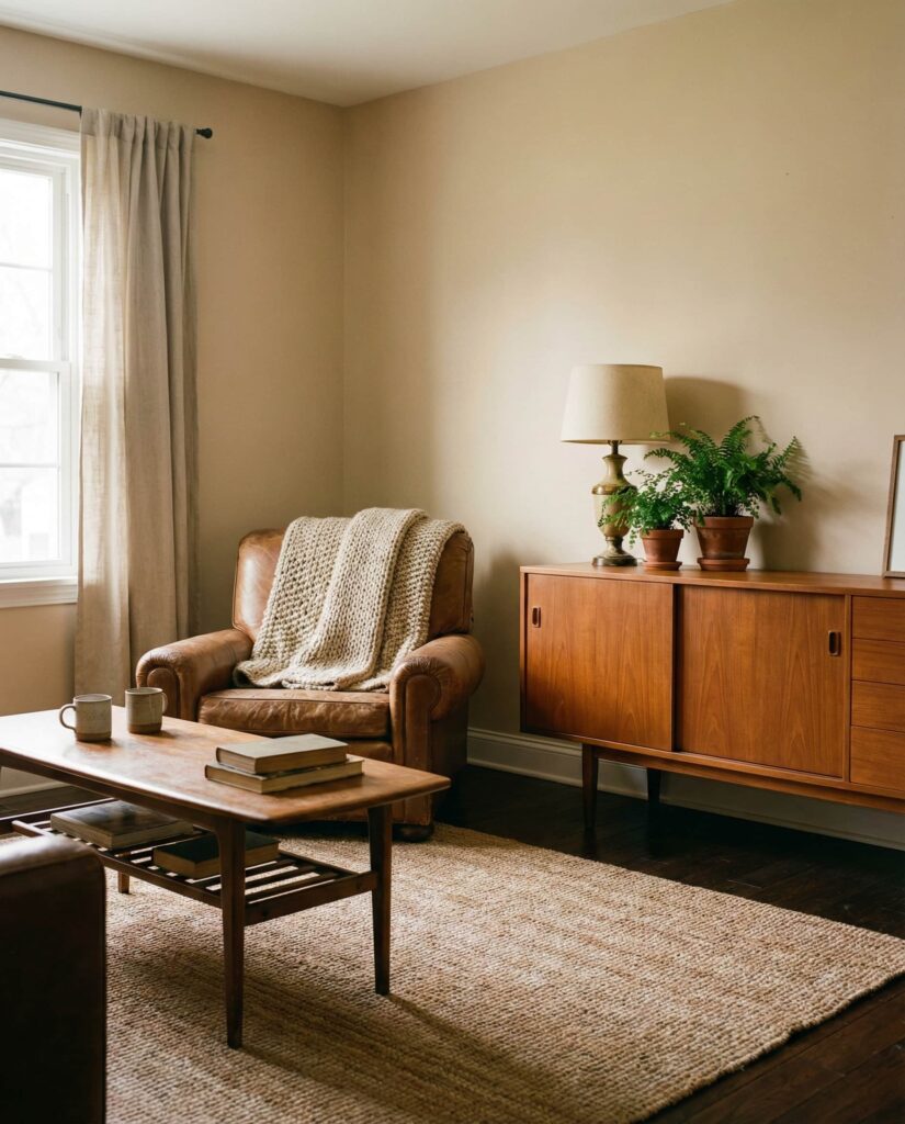 Incorporating Vintage elements adds personality and history to earthy living rooms. Whether it’s an aged cabinet, antique mirror, or worn armchair, these ideas create emotional depth within a Natural color scheme. Designers often recommend mixing old and new to avoid a staged look. I’ve noticed vintage pieces feel especially powerful when surrounded by simple decor and warm earth tones. The result is a layered aesthetic that feels authentic and deeply cozy.