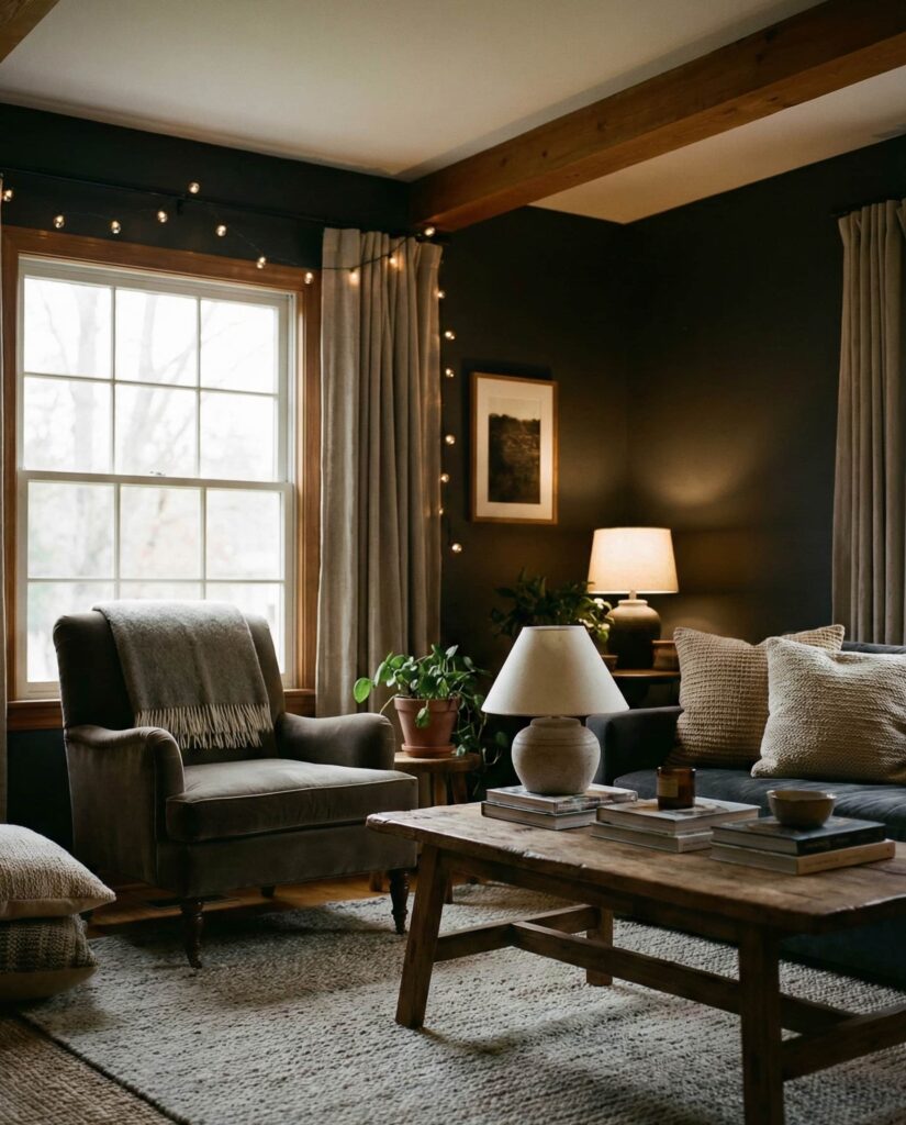 2. Dark and Cozy Living Rooms That Still Feel Inviting