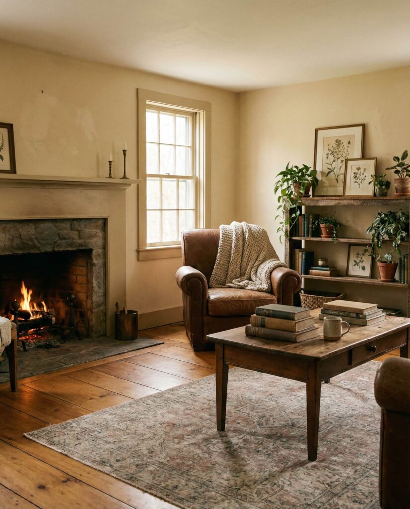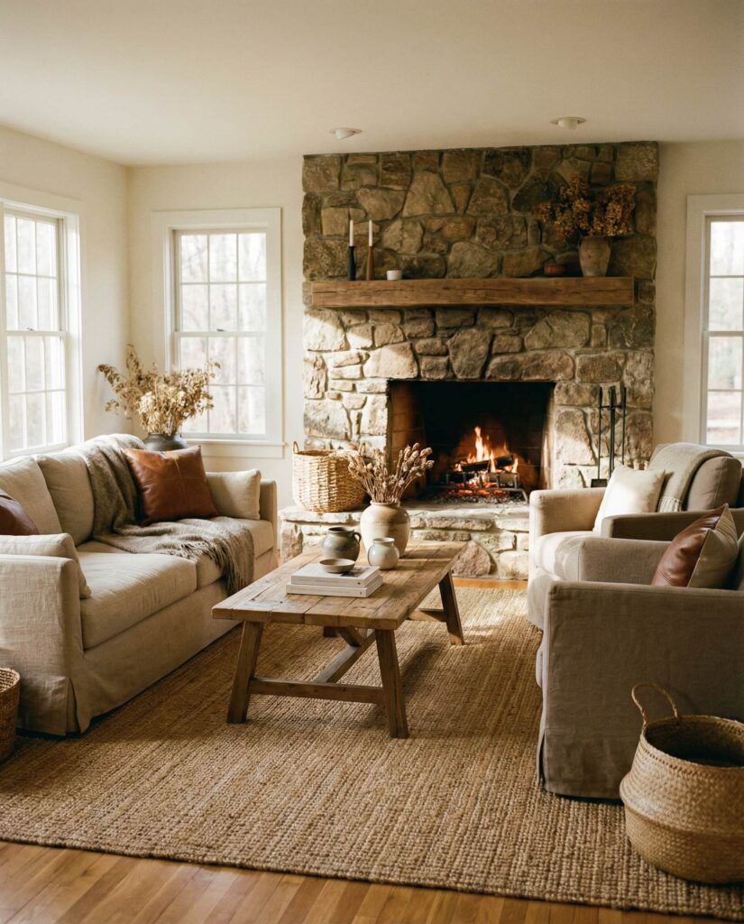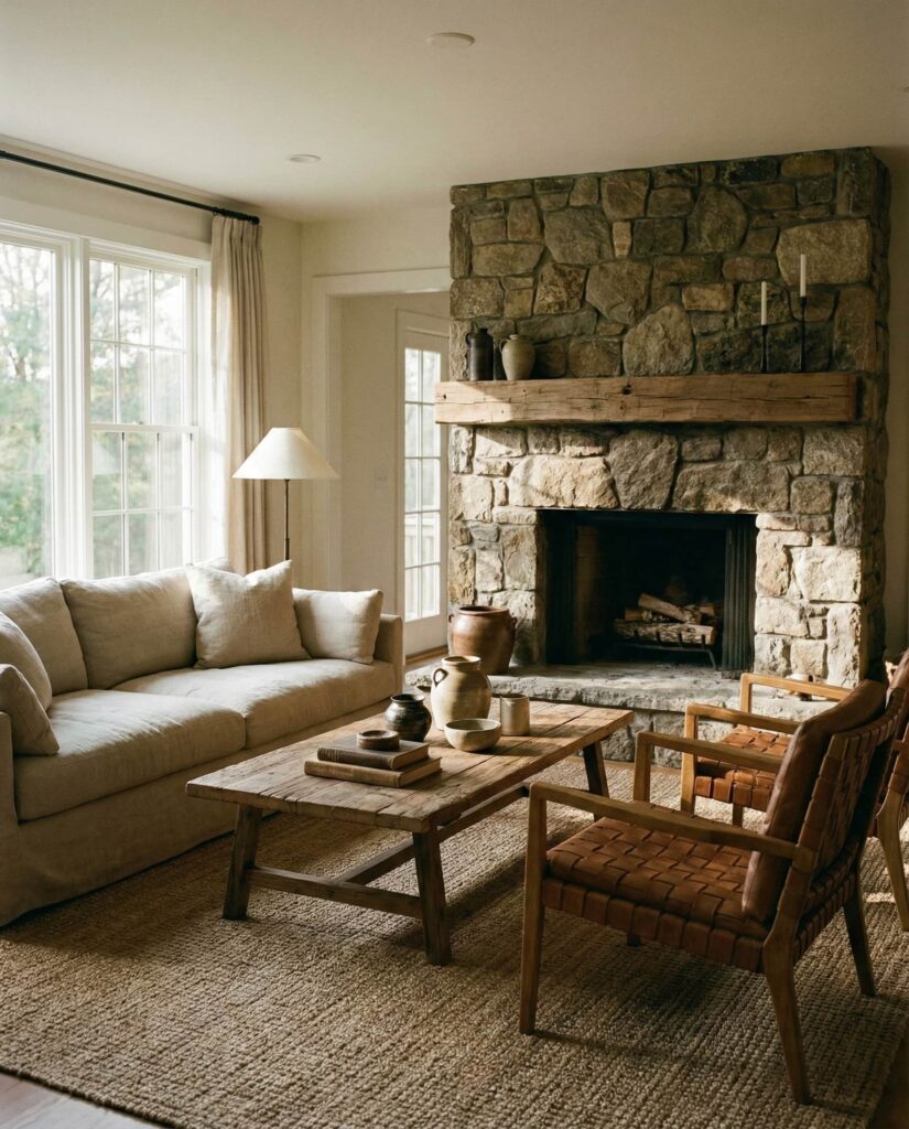 7. Fireplace as an Earthy Living Room Anchor