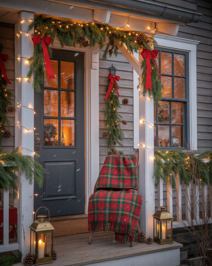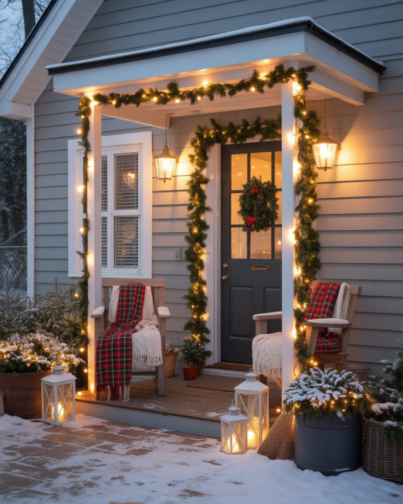 A simple porch can become a winter storybook with cascading lights, evergreen garlands, and soft plaid accents. Easy DIY touches—like wrapping banisters in twinkle strands or hanging yard decorations diy snowflakes—create instant charm. Even a few lanterns by the front door can feel elegant and classy, offering guests a warm holiday welcome.