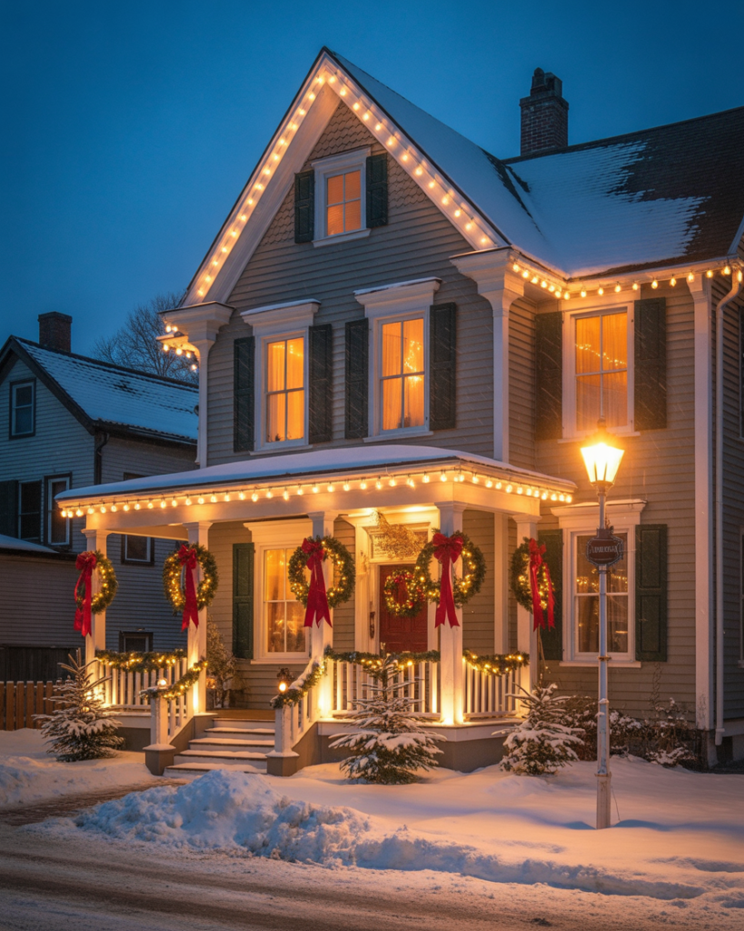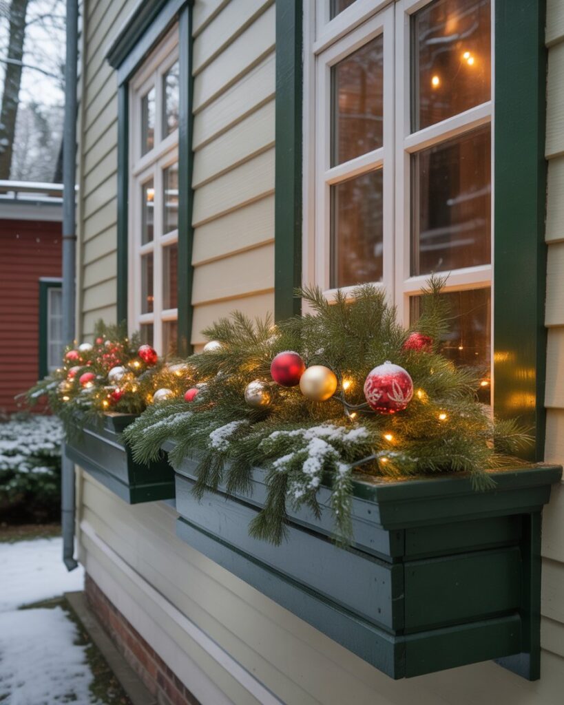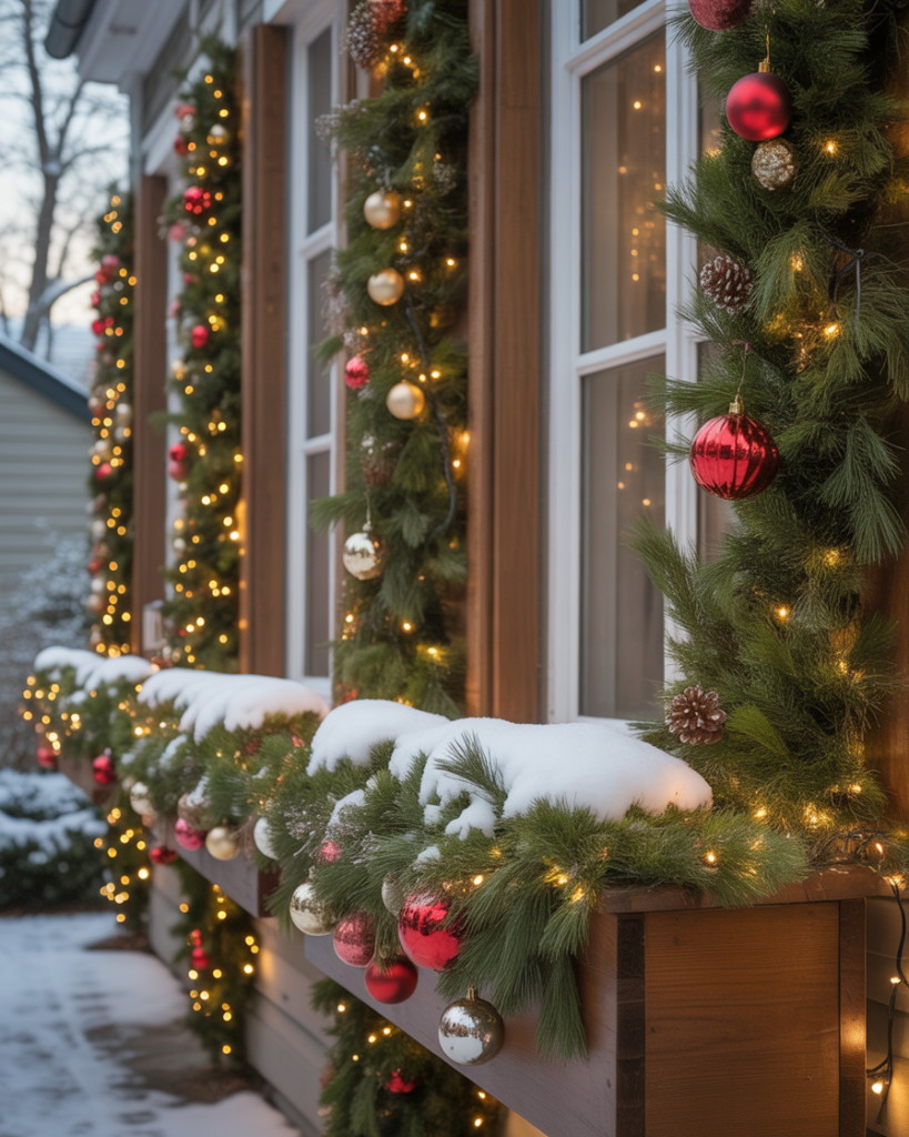 Don’t overlook your windows—fill window boxes with evergreen branches, ornaments, and lights. This ideas diy element feels classy, especially paired with matching front door decor. Even cheap materials can look luxe when styled simply and consistently across your house exterior.