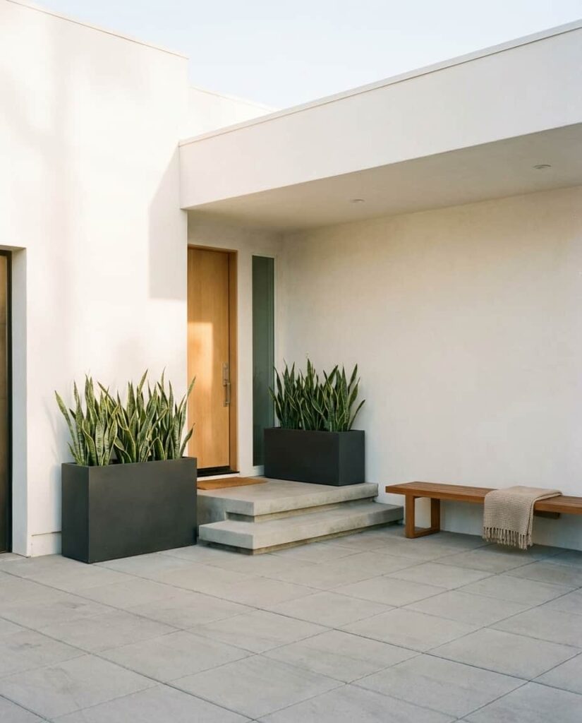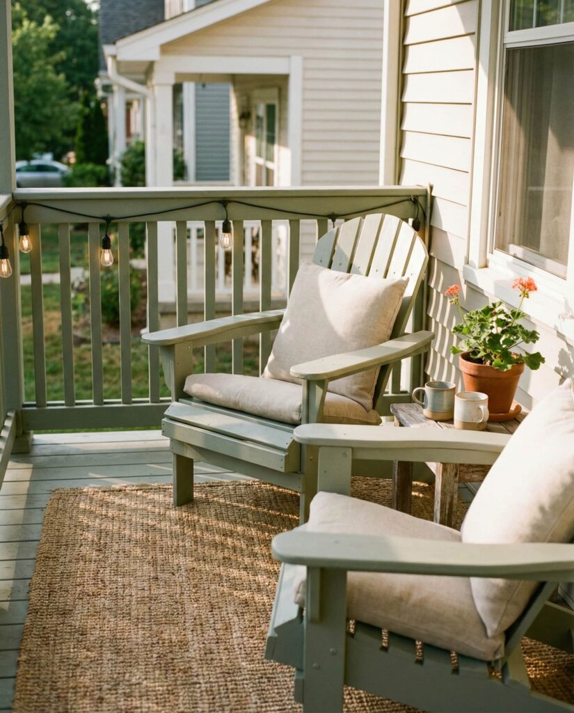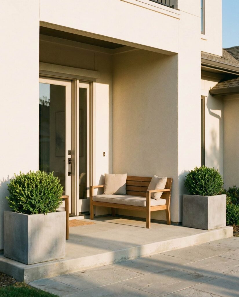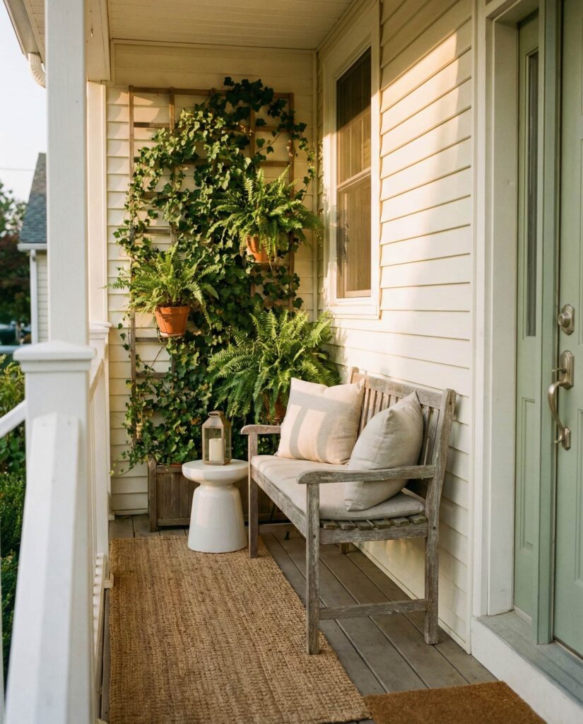 A Tiny front porch can still deliver strong visual impact when treated thoughtfully. Positioned at the Front, this idea relies on scale-appropriate furniture, vertical décor, and color restraint to avoid clutter. I’ve seen small porches instantly elevated by a single statement chair or oversized planter. According to Emily Henderson, editing is the secret weapon for small exterior spaces. This approach is ideal for townhomes, older houses, and compact builds where charm matters more than square footage, proving that size doesn’t limit style.