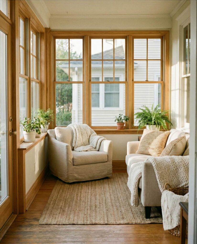 An Enclosed porch adapted for Apartment living offers renters and owners a controlled outdoor experience without exposure to weather. This idea emphasizes glass, slim framing, and flexible furniture that can shift between work and relaxation. I’ve seen city dwellers turn enclosed balconies into favorite rooms simply by adding rugs and lamps. Architectural Digest highlights enclosed outdoor rooms as a growing urban trend. It’s a smart way to gain livable square footage while maintaining a strong connection to light and views.