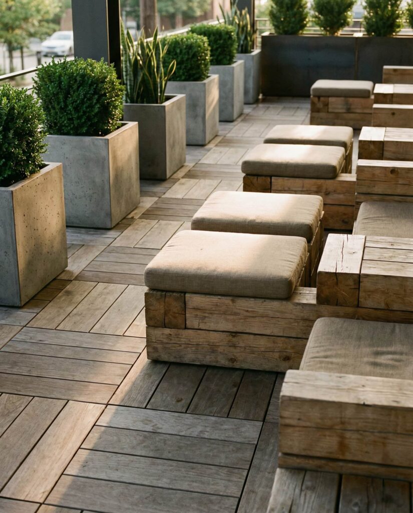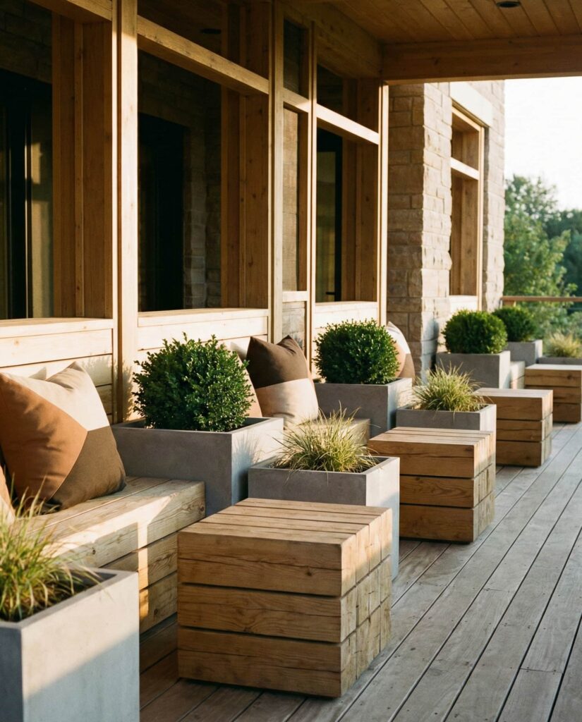 A porch influenced by Minecraft aesthetics embraces block-like forms, repetition, and modular thinking while staying grounded in real materials. This idea can apply to both Front and side porches, especially in modern homes. I’ve seen this style interpreted through squared seating, planters, and rhythmic layouts. Design blogs like Dezeen note how pixel-inspired geometry translates surprisingly well into architecture. The result feels playful yet structured, appealing to design-forward homeowners.