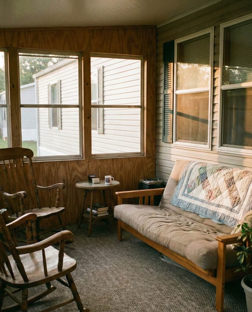 An Enclosed porch designed specifically for a Mobile home or Manufactured home adds comfort, insulation, and usable living space without complex renovation. This idea emphasizes practical materials, easy maintenance, and a layout that supports everyday routines like storage, seating, or casual dining. I’ve seen homeowners gain a favorite room simply by enclosing an existing porch footprint. According to Better Homes & Gardens, enclosed additions like this significantly improve daily comfort. It’s especially valuable in regions with changing weather, offering a controlled environment that still feels connected to the outdoors.