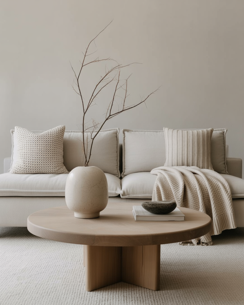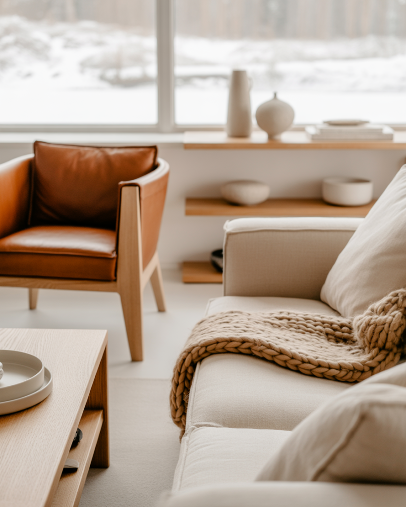 End with harmony — mix linen, wool, and natural leather for subtle contrast. These materials warm living room spaces without heaviness, evoking calm after Christmas. Pair them with smooth ceramics or slim wood furniture to capture effortless modern rustic sophistication for the home 2026 aesthetic.