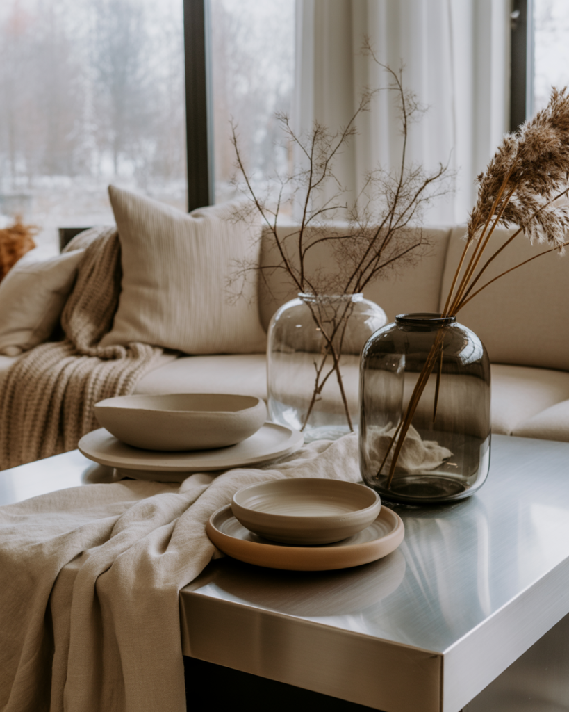 Finally, let rustic meet refined. Combine natural stoneware with sleek glass accents or linen with brushed metal. The contrast defines the home 2026 — organic yet streamlined. These subtle Winter Decor Ideas for the home remind us that elegance doesn’t demand excess, only thoughtful simplicity and tactile balance between indoor comfort and outdoor beauty.