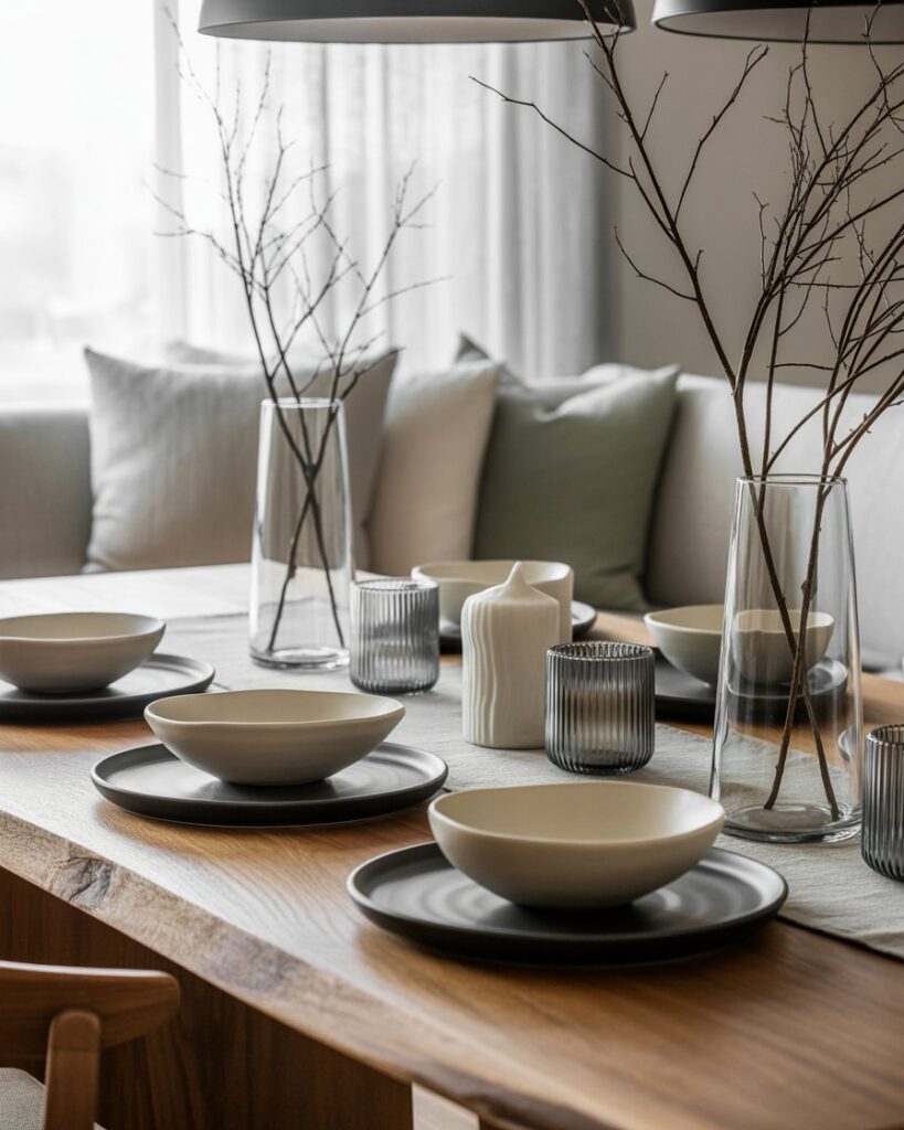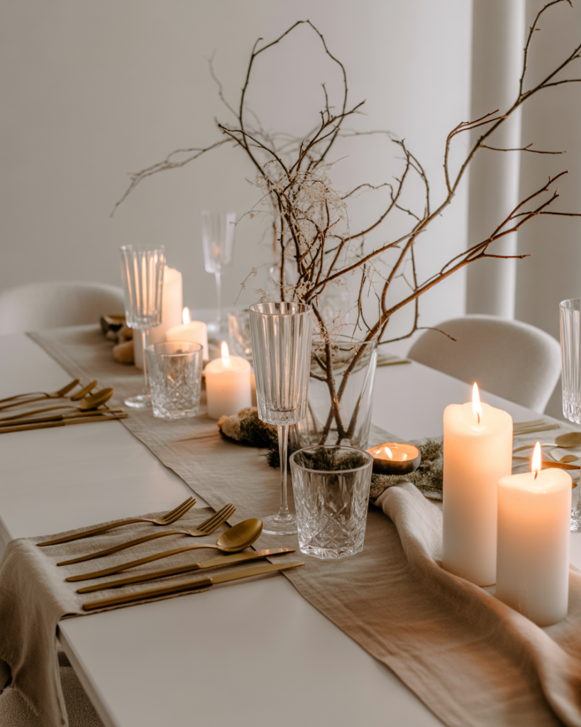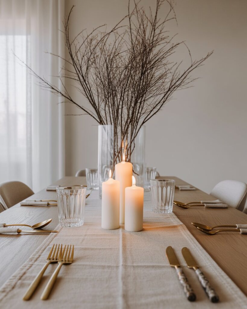 A winter dining room gains depth through muted layering. Use natural linen runners, clear glassware, and vintage silverware for subtle shine. Center the table with repurposed jars holding white candles or dried branches. These minimalist ideas for the home bring quiet sophistication perfect for the home after Christmas, balancing warmth with refinement.