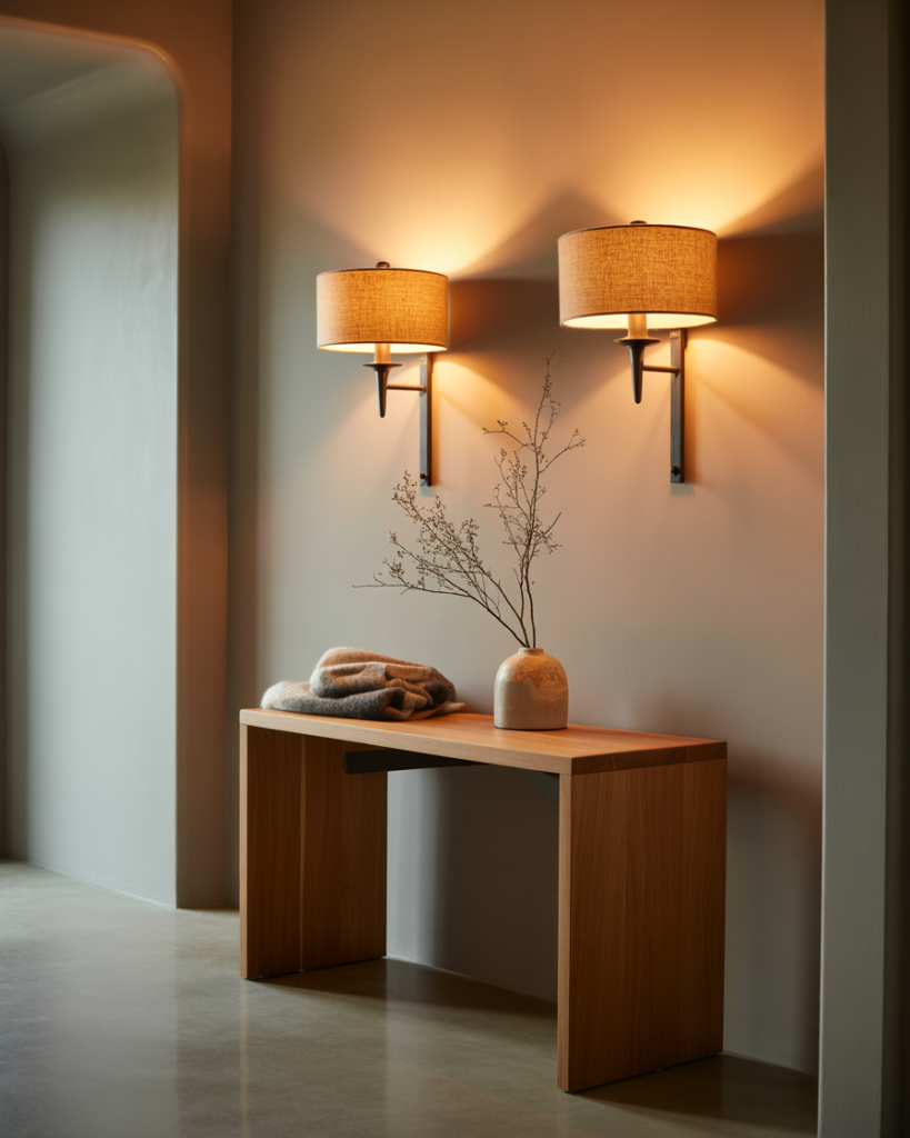 Lighting transforms entryways from plain to poetic. Try repurposed sconces or minimalist pendants in soft white. Combine with natural textures — linen shades or wooden frames — to balance geometry and glow. These ideas for entryways fit small front porch or indoor use, blending the home cozy atmosphere with streamlined design elegance.