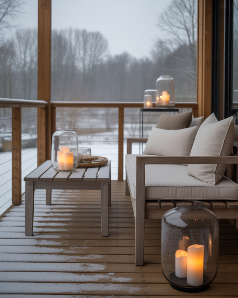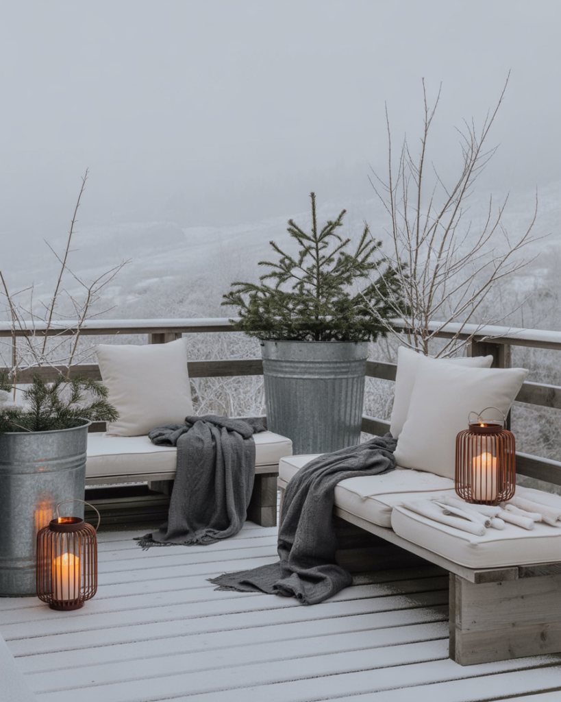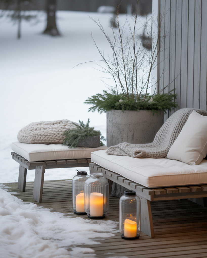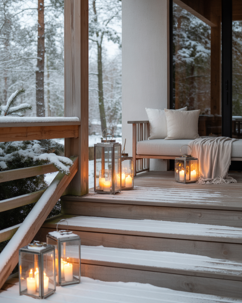 Even a small porch can reflect refined winter charm. Layer natural doormats, simple pine wreaths, and soft glowing lanterns for warmth. Avoid over-decoration — one sculptural accent says more than many. This understated elegance suits for small spaces, for entryways, and for the home rustic styles that prefer quiet sophistication over sparkle.