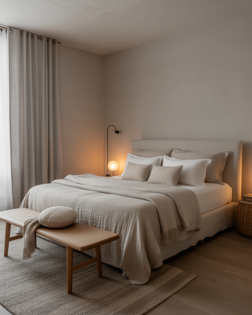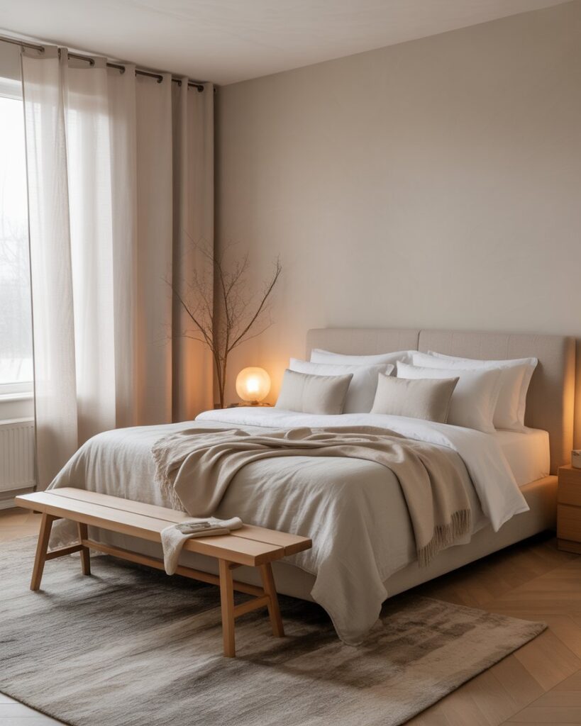 For the home cozy, embrace warm minimalism in the bedroom. Pair linen duvets in pale sand tones with wool rugs and repurposed wooden benches. A neutral color story invites rest, while soft indoor lighting keeps the atmosphere tranquil. This setting feels balanced after Christmas, blending serenity with subtle comfort perfect for long January evenings.