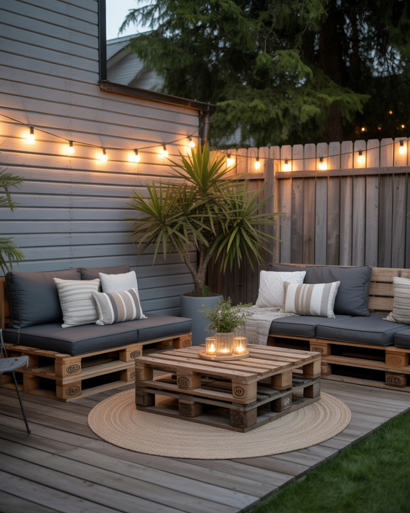 A Diy lounge built with pallets is an easy budget trick that adds charm and function to any outdoor corner. It adapts perfectly for renters, since it’s movable, and makes a cozy seating zone with cushions or throws. A friend once used this idea during a tight summer budget, and the relaxed atmosphere ended up becoming the favorite weekend hangout. Great for casual hosting and simple upgrades.