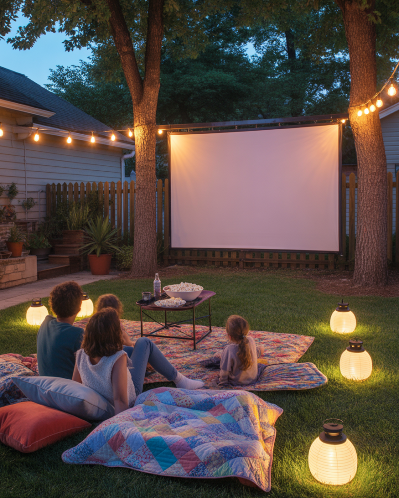 Turning a blank wall into a movie screen brings fun into any yard and costs very little. A projector, a sheet, and some blankets create a cozy entertainment zone. Families love this idea for kids, and it works in both big and tiny yards. I once organized outdoor movie nights with neighbors, and the sense of community was priceless.