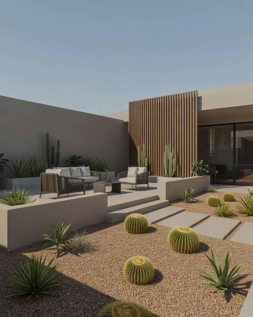 Gravel patios are one of the best easy ways to cover dirt and create a clean, functional seating zone. They work in modern, rustic, and desert styles, making them extremely flexible. I’ve installed several for friends who wanted instant improvement without big spending, and the difference was immediate.