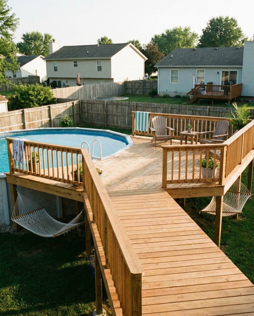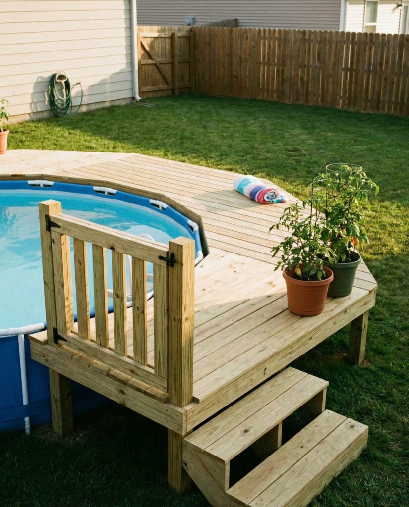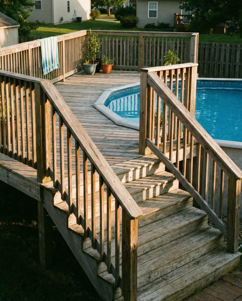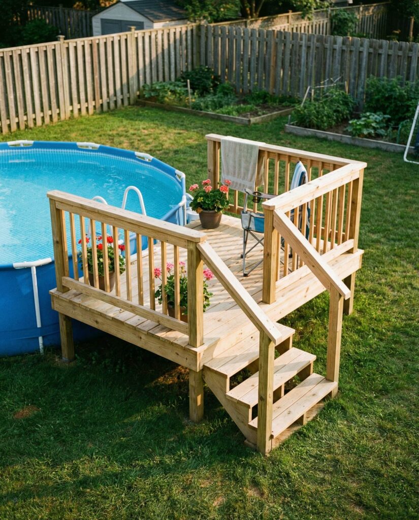 For many families, cheap easy deck ideas are the entry point into pool ownership. These plans prioritize function over excess, often using modular framing, basic railings, and simplified stairs. I’ve spoken with homeowners who appreciate how a small starter deck can evolve over time rather than requiring a major upfront investment. Builders note that keeping the footprint compact reduces permit stress and maintenance costs. Even modest decks can feel intentional when proportions are right and materials are consistent. This approach proves that affordability doesn’t have to look temporary.