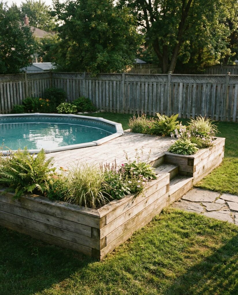 11. Above Ground Pool Deck with Integrated Landscaping Zones