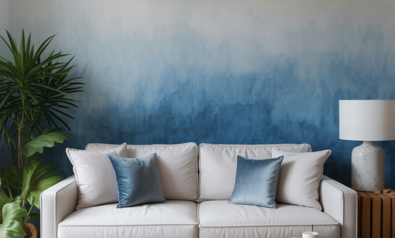 A blue ombre wall offers a soothing, painterly transition from light to dark, creating motion and depth. This works well in rooms lacking architectural features, adding visual interest without overpowering the decor. I once saw this technique used behind a couch, and the gradient made the space feel taller and more open.
