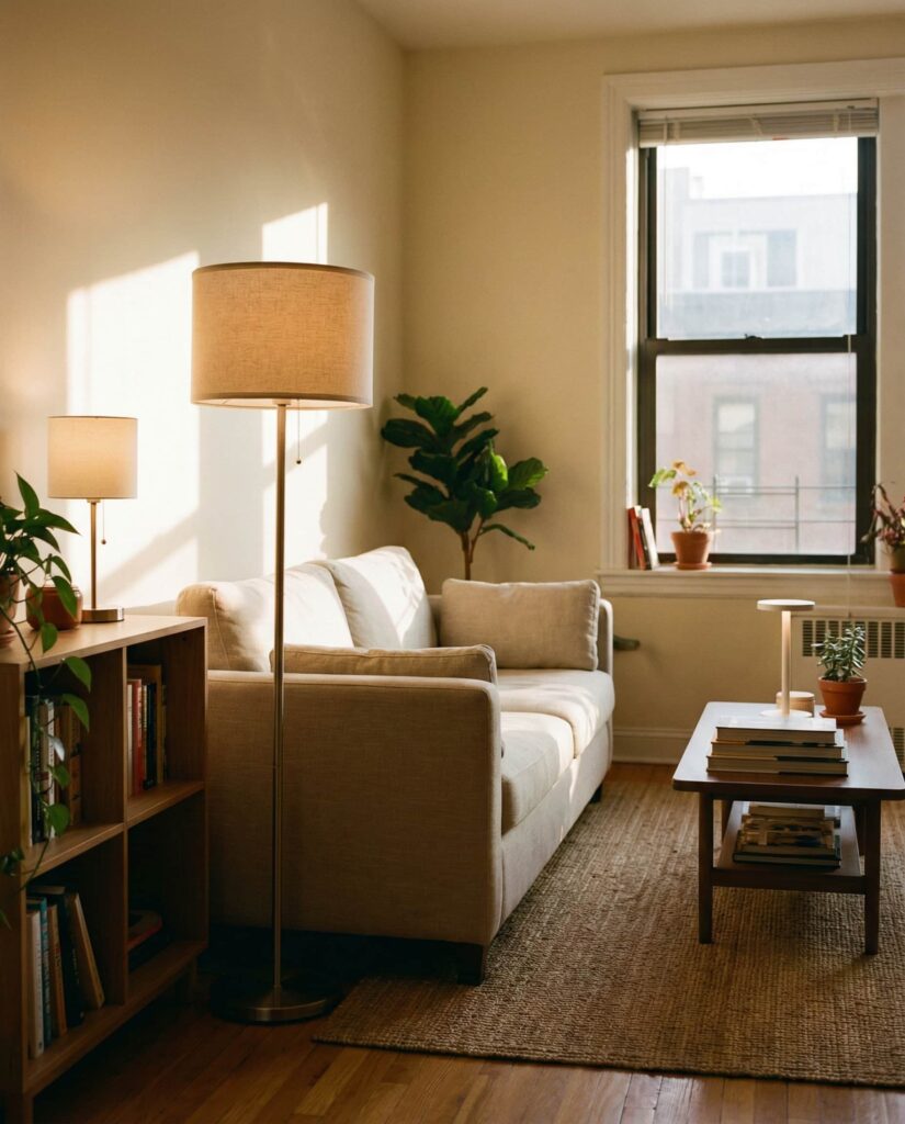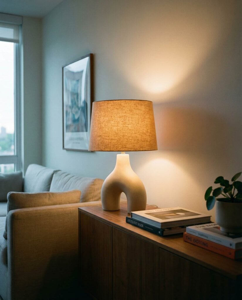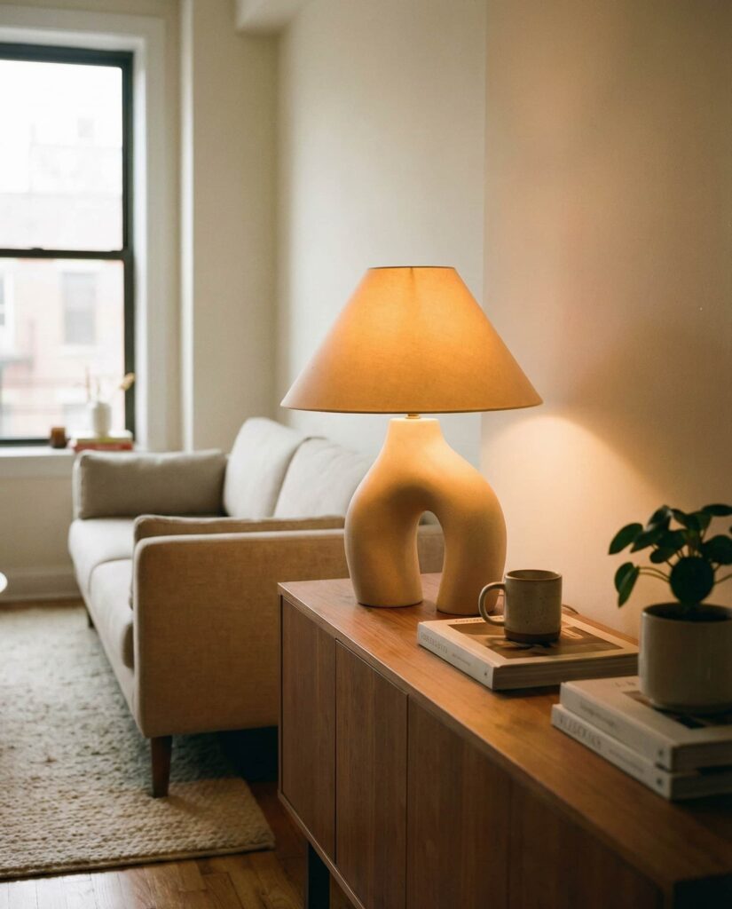 Table lamps are no longer background pieces but central Design elements. One of the most versatile Ideas for apartments is choosing sculptural lamps that double as décor, especially in a Living room or ideas bedroom setup. This trend blends Aesthetic appeal with function, allowing renters to express personality without renovations. In Studio apartments, a single bold lamp can anchor a seating area while providing Soft Ambient light. Inspired by editorial features from major design platforms, this approach feels Cool yet practical. It works equally well in College apartments or more refined homes, proving that lighting can be expressive without overwhelming the space.