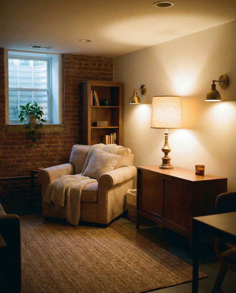 Lighting is often the defining factor in making a Basement apartment feel livable rather than temporary. One of the most practical Solutions is using layered Soft lighting with warm tones to counteract the lack of daylight. Instead of bright overhead lights, designers suggest multiple lamps placed at different heights to build comfort. This creates a Cozy and welcoming environment that feels intentional, not improvised. In urban rentals, especially in Nyc, this approach is often cited as essential inspiration for lower-level spaces. The right lighting transforms limitations into atmosphere.