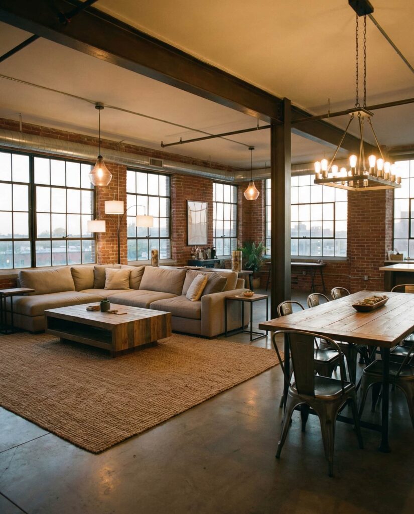 Exposed bulbs and metal finishes remain strong Ideas for apartments seeking an Industrial edge. Popular in Loft layouts and converted buildings, this lighting style emphasizes structure rather than decoration. Paired with concrete or Wood floor surfaces, it creates a grounded, urban feel. The trick in 2026 is moderation: mixing industrial Fixtures with warmer Soft accents to avoid a cold look. This balance is often highlighted in Nyc apartment tours, where character matters as much as comfort. It’s a style that feels authentic rather than trendy.