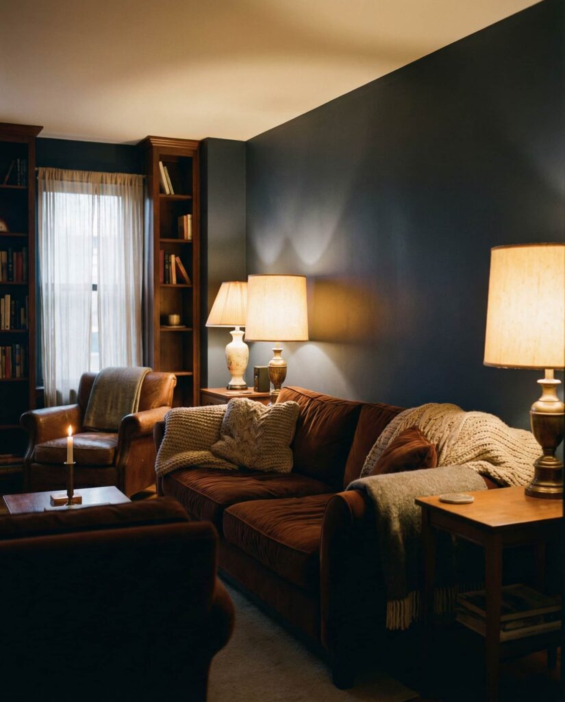 16. Dark Walls Paired with Soft Lighting