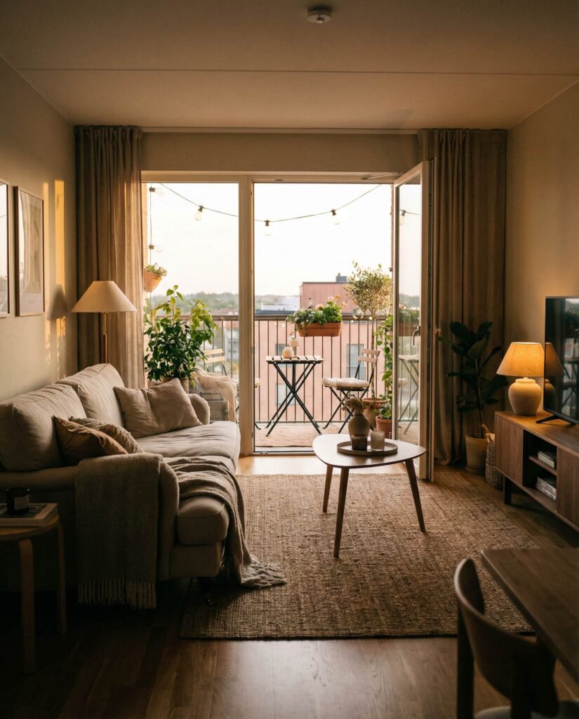 Creating visual flow between indoors and outdoors is one of the most refined apartment lighting Ideas. By using similar tones and fixture styles inside and on balconies, spaces feel larger and more cohesive. This is especially effective for Balcony ideas in city apartments where outdoor areas are limited. The continuity supports a calm, Aesthetic experience that feels intentional. It’s a subtle Design strategy that enhances everyday living without excess.