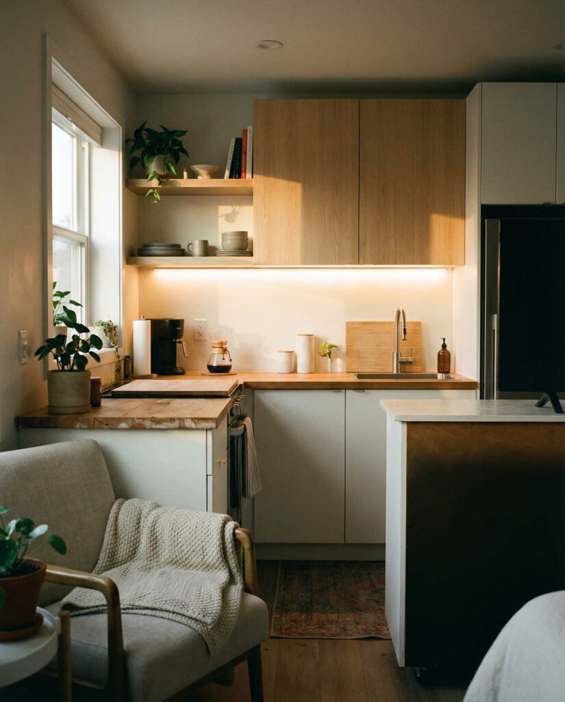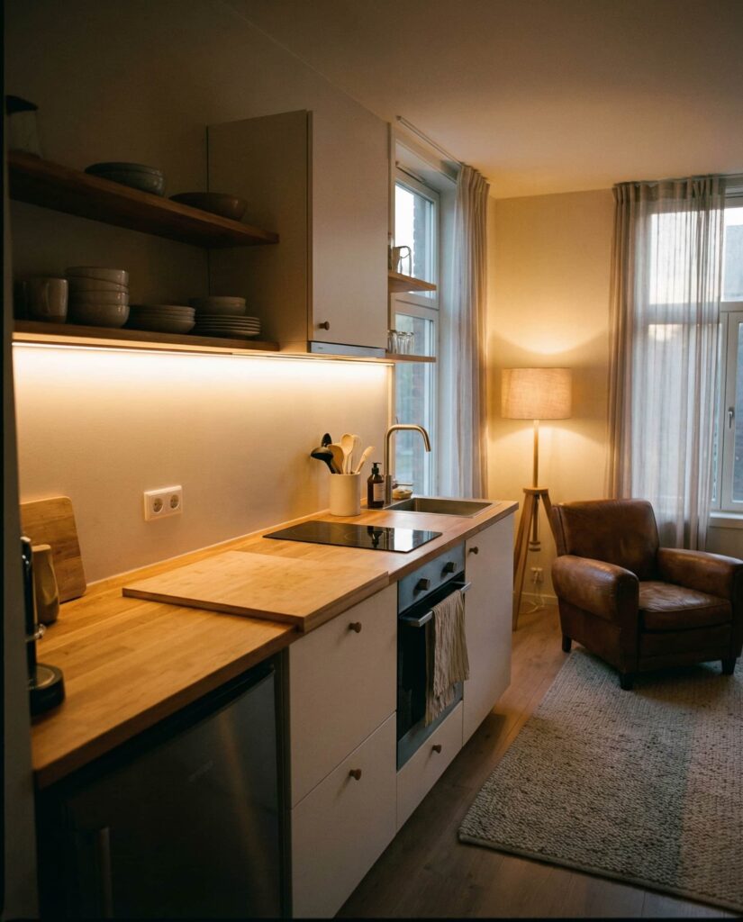 21. Soft Lighting for Small Studio Kitchens