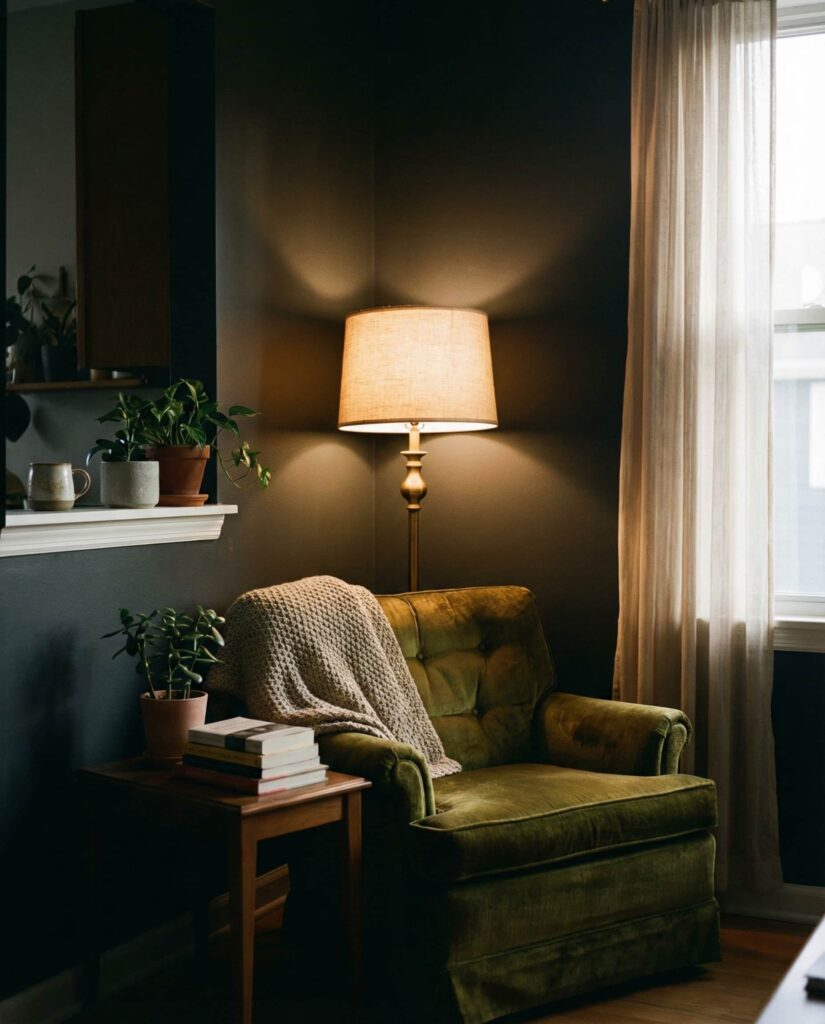 Creating Moody lighting zones is one of the most effective Ideas for personalizing an apartment. Instead of lighting everything evenly, designers now recommend darker corners with focused light for reading, music, or reflection. This works beautifully in a Studio or Living room, where zoning is essential. Think Dark walls paired with warm lamps to create contrast without heaviness. This approach feels intimate and deeply Cozy, echoing trends seen in Nyc apartments and featured often as Inspo online. It’s also budget-friendly, relying on plug-in Fixtures rather than built-ins. The result is a layered emotional landscape that feels grown-up, intentional, and quietly luxurious.