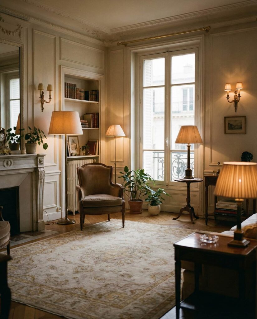 The enduring appeal of Parisian lighting lies in its restraint. Instead of bright overheads, apartments use wall lights and shaded lamps to create a gentle Ambient glow. This style works beautifully in smaller Living room spaces, adding romance without excess. It’s often cited as timeless inspiration on design platforms and suits renters who prefer elegance over trends. The mood feels Aesthetic, Soft, and effortlessly sophisticated, proving that subtle lighting can carry a room.