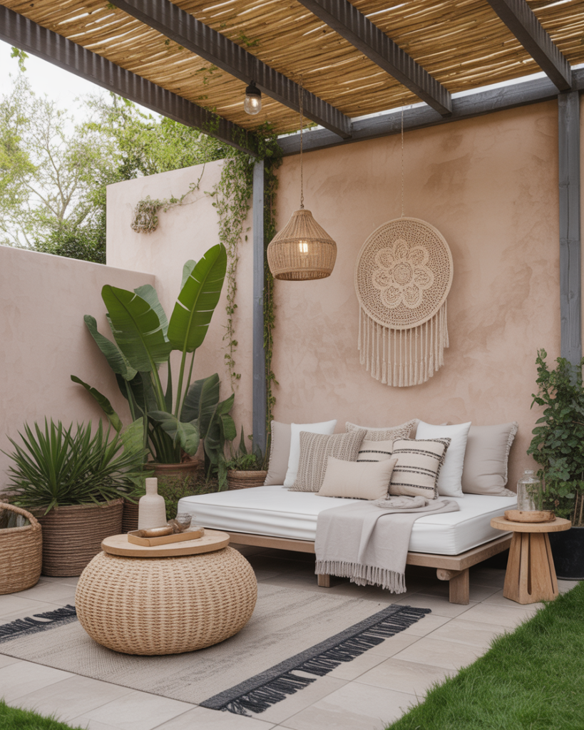 A boho daybed zone enhances outdoor relaxation and suits a budget pavers or deck layouts. Layered textiles and lanterns make the space inviting. I once saw a neighbor repurpose an old futon frame with weatherproof cushions—proof that creativity can turn any corner into a dreamy retreat.