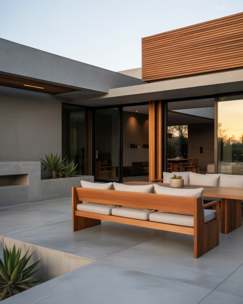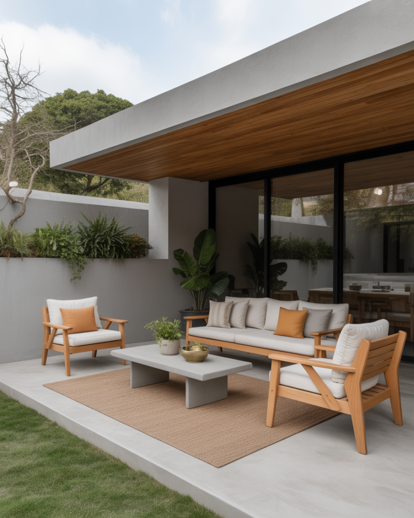 Mixing concrete with warm wood trims brings modern comfort to outdoor living. This blend works for a budget diy outdoor areas since both materials are affordable. I saw this combination at a friend’s newly remodeled yard, and the texture balance looked surprisingly high-end.
