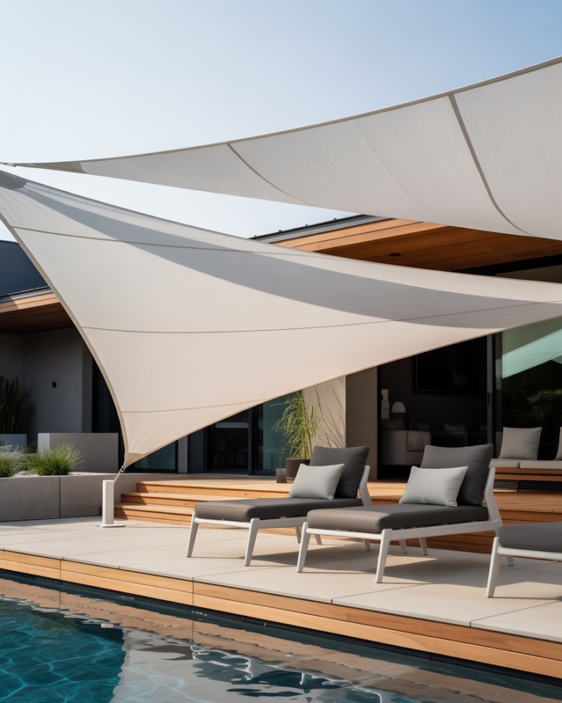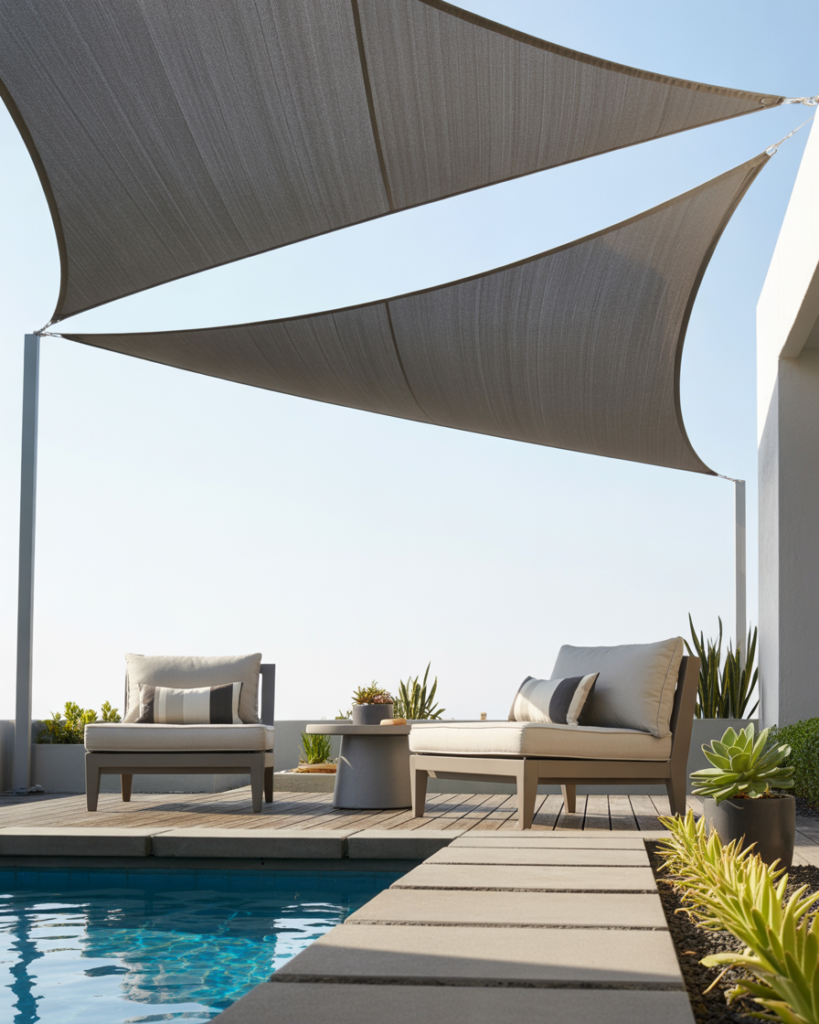 A shade sail makes a with pool patio comfortable without needing expensive construction. It’s perfect for cheap upgrades and suits both big pools and small splash areas. I once helped install a sail over a kiddie pool, and the comfort upgrade was immediate and dramatic.