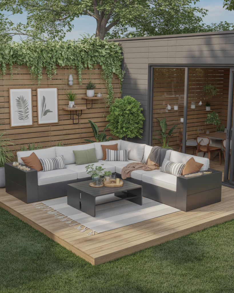 Modular furniture helps shape flexible outdoor layouts, perfect for a budget diy outdoor areas or tiny patios where every inch counts. Rearranging pieces creates new seating zones for meals, lounging, or working outside. I once helped a friend design her patio using secondhand modular cubes, and the ability to reconfigure the space instantly made her small yard feel twice as functional.