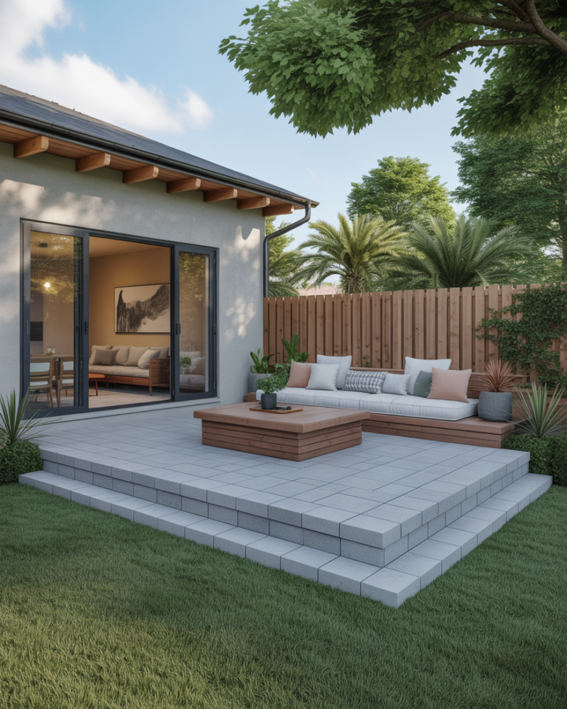 An extended patio built with a budget pavers or on a budget pavers approach offers both function and style. This layout works for expanding narrow patios or defining larger entertainment spaces. A friend once extended her backyard with leftover bricks, instantly making her yard look curated and cohesive without a contractor. It’s a flexible idea that fits nearly any home style.