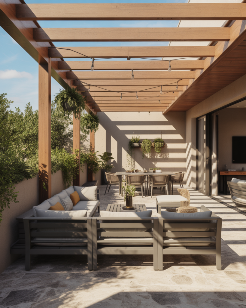 A half covered patio offers the best of sun and shade, great for small spaces, large yards, and on a budget diy projects. My cousin’s half-roof pergola transformed family gatherings—kids played in the sun while adults chatted under shelter. This balanced structure brings versatility to yards that need flexibility throughout the seasons.