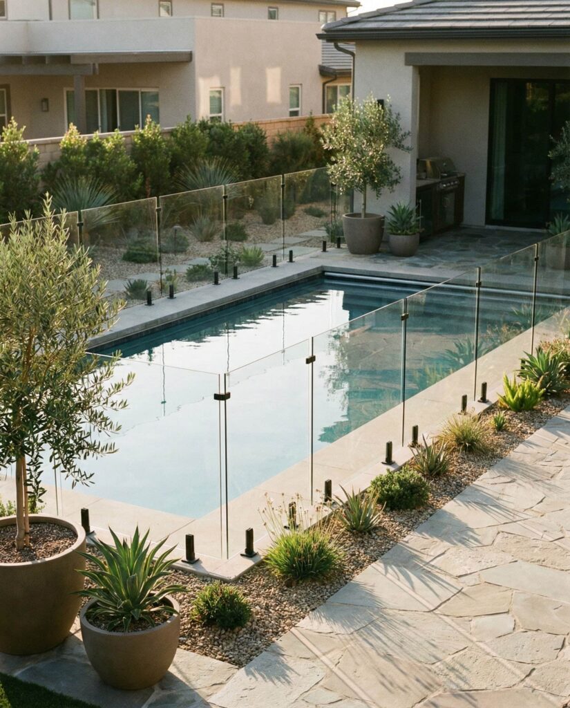 A Ground level pool designed around a thoughtful Fence solution is gaining attention among homeowners who want safety without sacrificing style. These Modern layouts often feature low-profile fencing in glass or dark metal, blending seamlessly into the landscaping rather than enclosing it visually. I’ve seen this idea resonate with families and pet owners who want peace of mind while keeping the yard open and refined. Designers frequently note that zoning the pool area clearly improves usability and long-term value, especially in shared neighborhoods. This approach works equally well for a Medium suburban lot or a small yard, proving that safety-driven design can still feel intentional and elegant.
