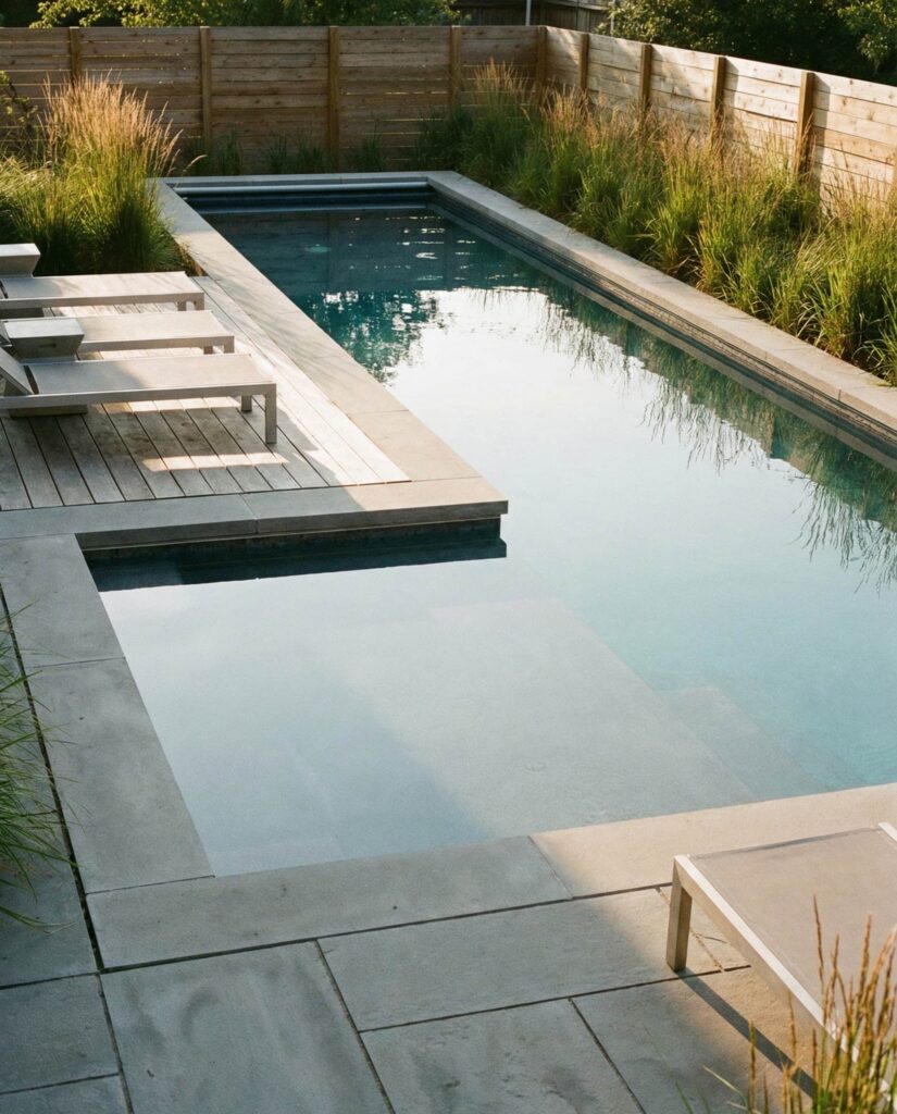 A Lap and lounge area pool blends fitness with relaxation, ideal for homeowners who value daily routines. The design usually features long, narrow swim lanes paired with shallow lounging shelves. I’ve heard designers describe this as the “morning workout, evening unwind” solution. It fits well in Narrow yards and urban homes where space efficiency matters. This style feels particularly relevant as wellness continues to influence home design, making the pool a functional extension of a healthy lifestyle rather than a seasonal luxury.
