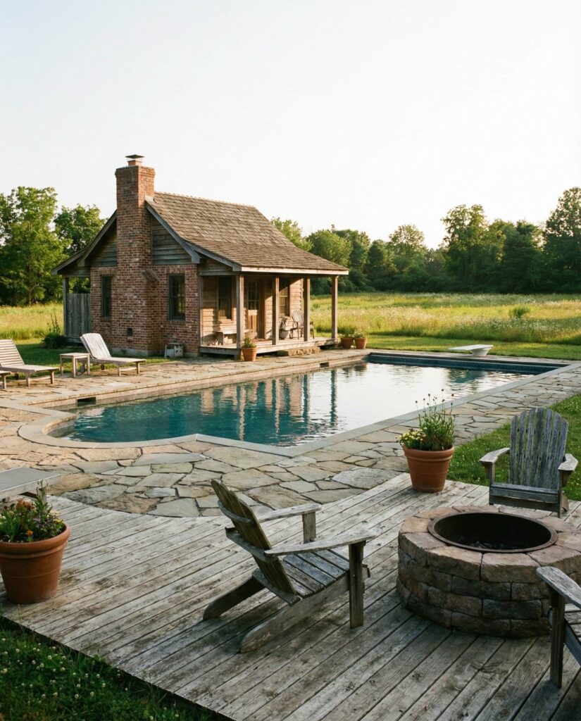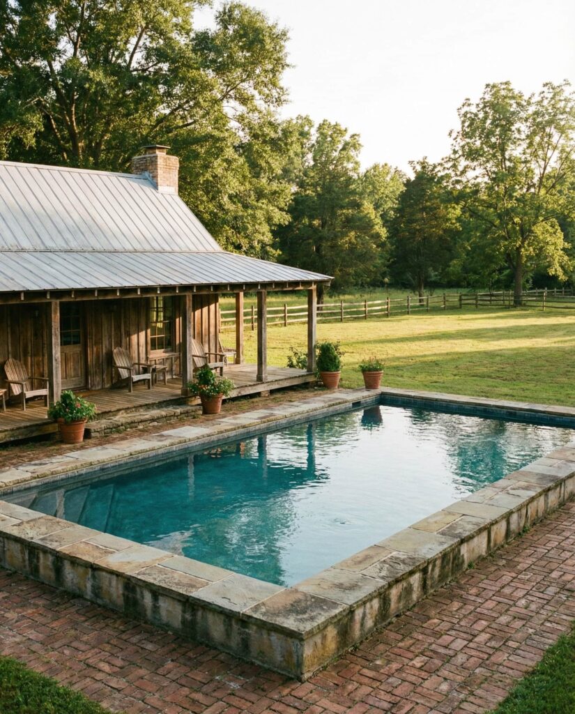 A Country pool paired with a Pool house emphasizes comfort over formality. This style often includes brick, wood beams, and practical storage for towels and tools. I’ve noticed it resonates with homeowners who host large gatherings and value function. Rather than feeling rustic, the best examples feel timeless and welcoming. Design writers often point out that these pools age gracefully, blending into their surroundings instead of chasing trends.