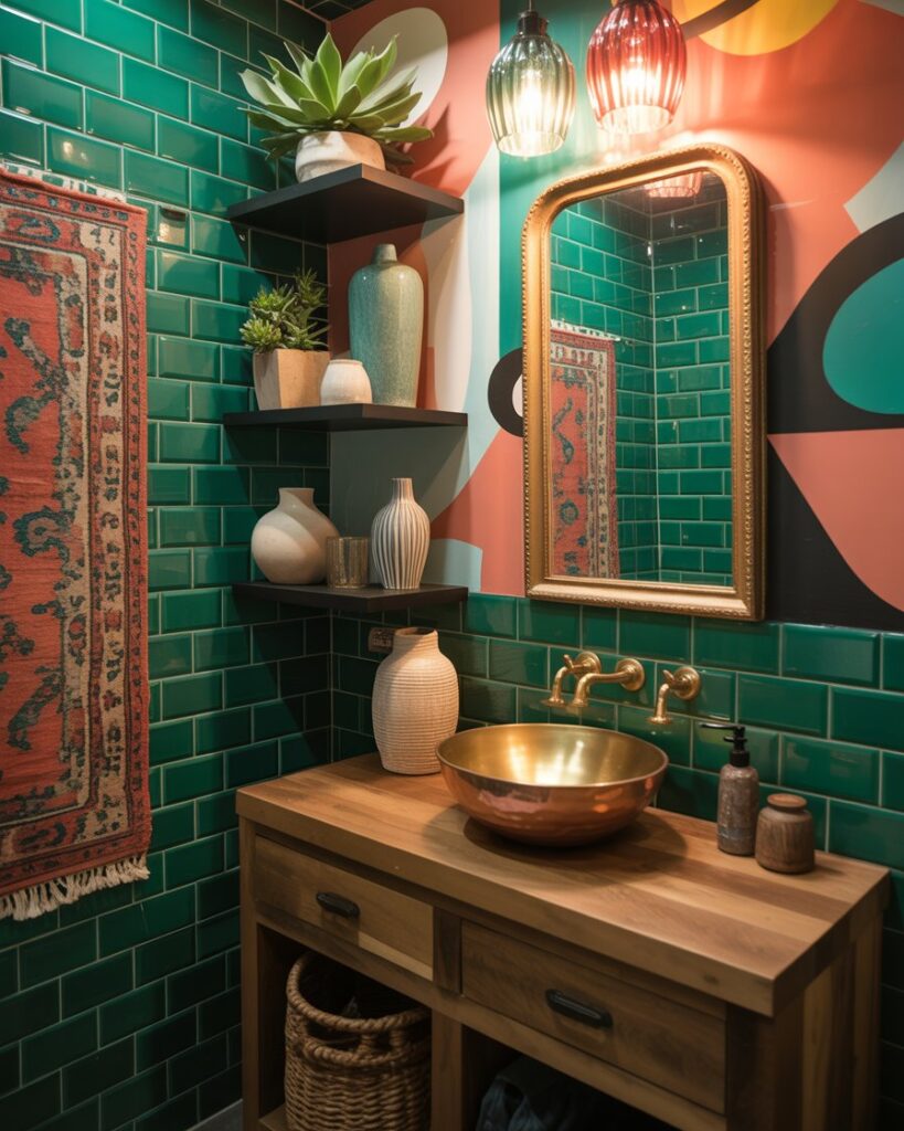 An Eclectic gallery-style bathroom invites creativity with mixed materials and playful colors. Perfect for confident decorators, this style adds interest through layered accessories and varied shapes. It transforms even small spaces into expressive corners that feel unique and personal.