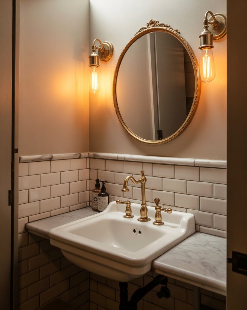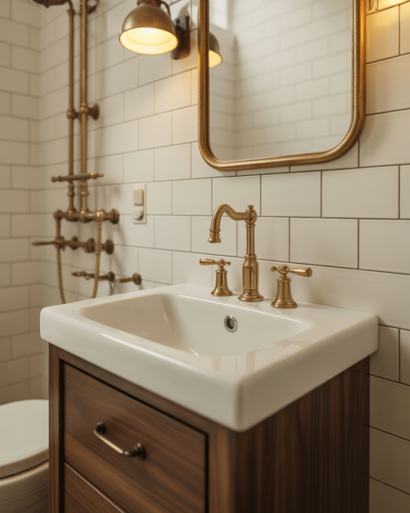 A Vintage-meets-modern bathroom merges old-world charm with clean contemporary structure. Classic silhouettes, warm metals, and streamlined layouts work beautifully for small bathrooms, offering character without sacrificing function. This blend adapts easily to different homes while keeping the space comfortable, meaningful, and visually balanced.