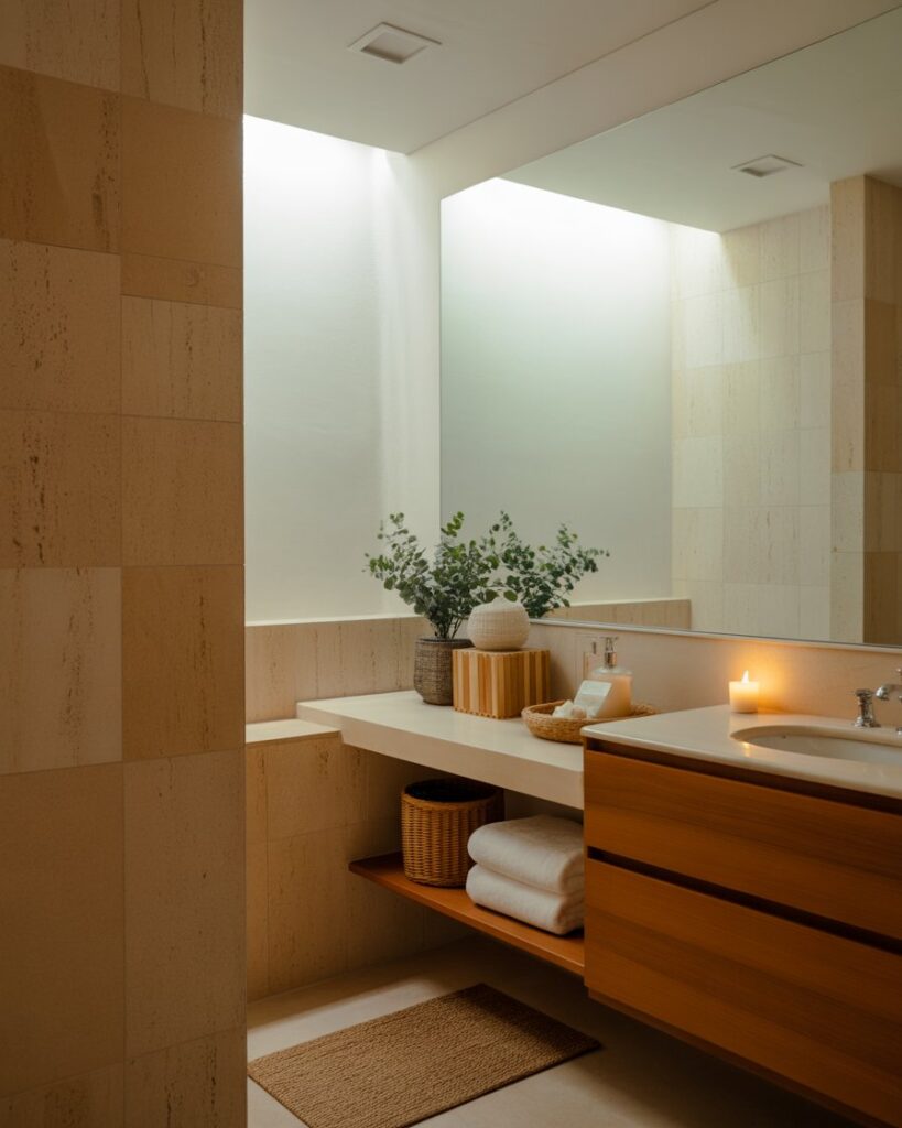 A Spa-inspired bathroom embraces calm through soft textures and organic elements like stone, bamboo, and airy neutrals. Even small spaces can feel restorative with simple upgrades that promote unwinding after long days. This idea offers peaceful warmth and turns daily routines into soothing moments.