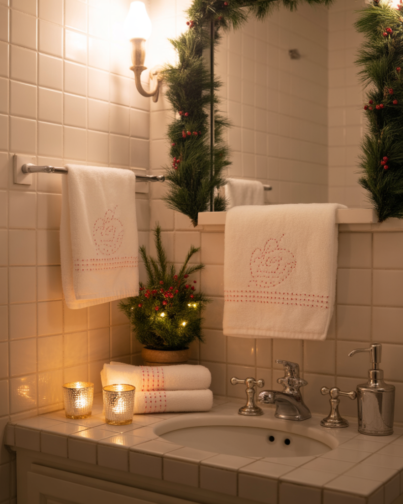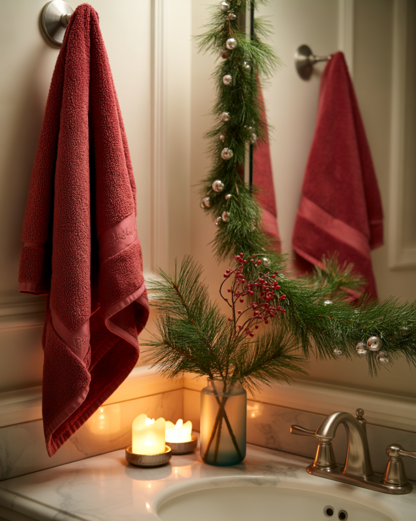 A Christmas-infused design brings festive charm using deep greens, warm textiles, and touches of silver that adapt easily to diy decorating. This approach suits guest bathrooms especially, adding cheerful hospitality during holiday gatherings without overwhelming the space or requiring major changes.