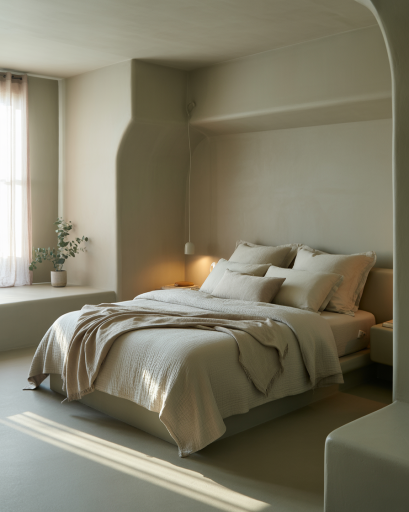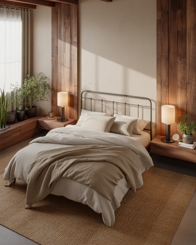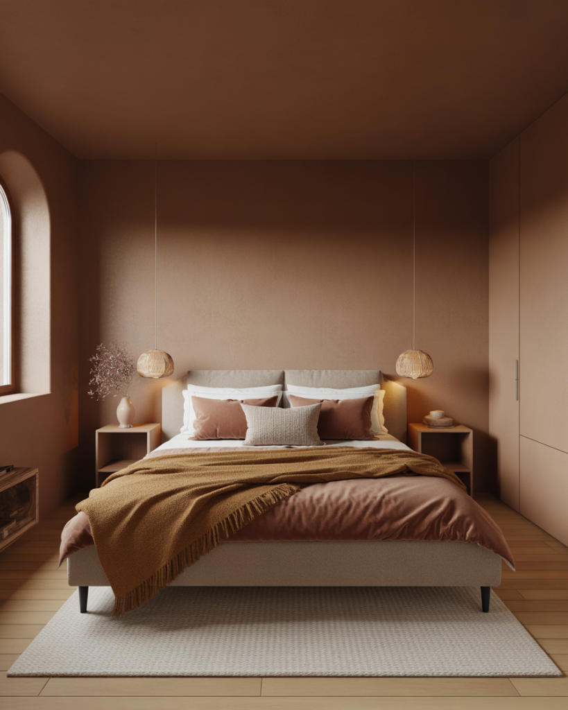 A Unisex, Simple, softly Cosy earth-tone palette creates warm neutrality. Clay, sand, and olive shades keep both partners comfortable, especially when preferences clash. A couple I know solved years of color debates by shifting to earth tones—it felt like a warm desert morning. Stylists highlight earth palettes as emotionally harmonious for 2026 bedrooms.