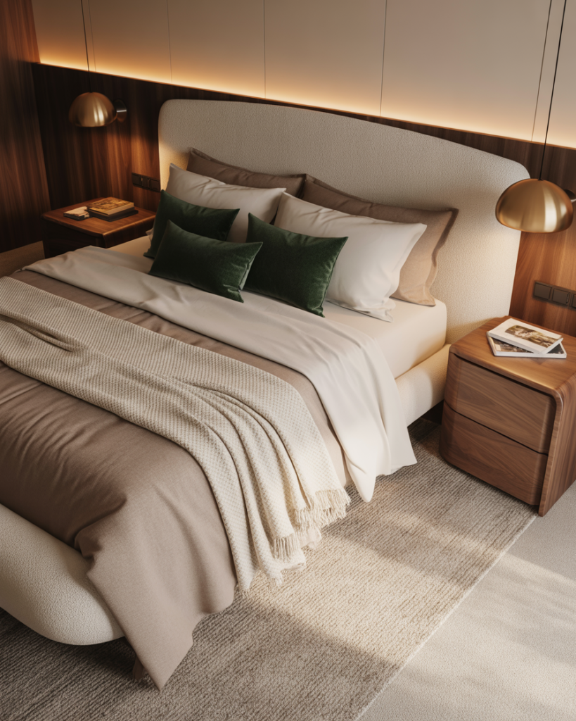 A Double, Cozy, Cosy layering approach—mixing linen, knit, cotton, and velvet—creates a tactile bedroom that feels comforting for couples year-round. I once stayed in a guest room where everything invited touch, and it was instantly relaxing. Designers at Apartment Therapy often recommend texture-layering for couples who share different temperature needs while keeping the room visually unified.