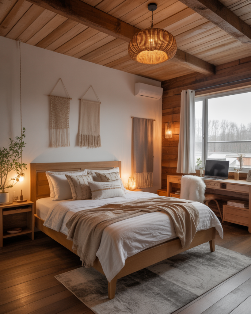 A Rustic, slightly vintage, softly Cozy room blends natural textures and nostalgia. Exposed wood, woven baskets, and handcrafted accents create warmth, even in a Small space. I once visited a cabin-themed guest room that felt instantly grounding, like stepping into a family memory. Country Living predicts rustic-modern hybrids will remain beloved in 2026 for their emotional warmth.