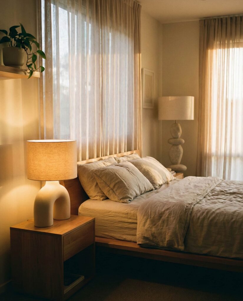 Japandi bedrooms continue to dominate design modern conversations because they merge Japanese restraint with Scandinavian warmth. This approach to design luxury feels quiet rather than showy, using White, soft Colour transitions, and tactile wood to create a Minimal, deeply Aesthetic retreat. I’ve noticed how friends with high-stress jobs gravitate to this style for their Masterbedroom, as it removes visual noise without feeling cold. Low furniture, natural linen, and intentional emptiness define design luxury classy here, making the space feel like a private Hotel sanctuary rather than a display room.