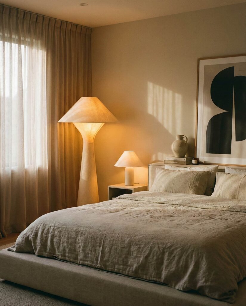 Lighting in 2026 bedrooms is no longer hidden—it’s celebrated. Sculptural lamps, paper lanterns, and soft LED strips now double as decor. This idea supports design modern thinking, where ambiance matters as much as form. I’ve seen how warm, adjustable lighting transforms mood instantly, especially in bedroom interiors used for reading or unwinding. It’s an Aesthetic upgrade that feels both emotional and functional.