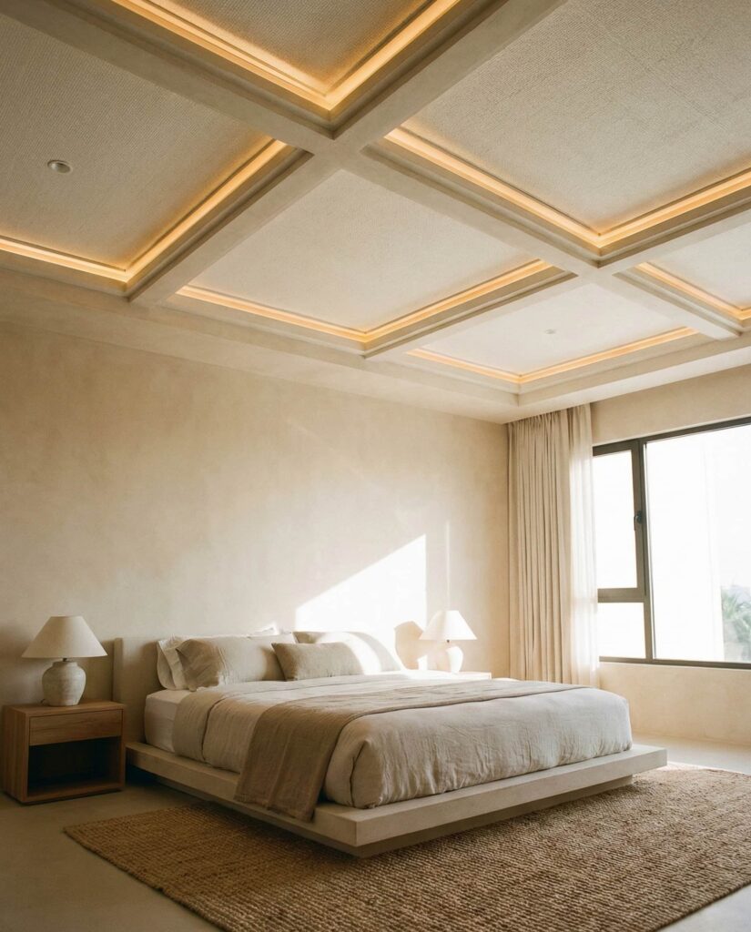 In 2026, ceiling design modern treatments are no longer optional accents but central to bedroom design. From shallow coffers to concealed lighting, ceilings now define mood more than wall color. I’ve personally seen how a well-designed ceiling transforms even a Simple bedroom into a design luxury master suite. Soft indirect light, plaster textures, or wood inlays add depth without overwhelming. This approach aligns with design luxury 2025 thinking, where sophistication is built upward, creating intimacy while keeping walls clean and Minimal.