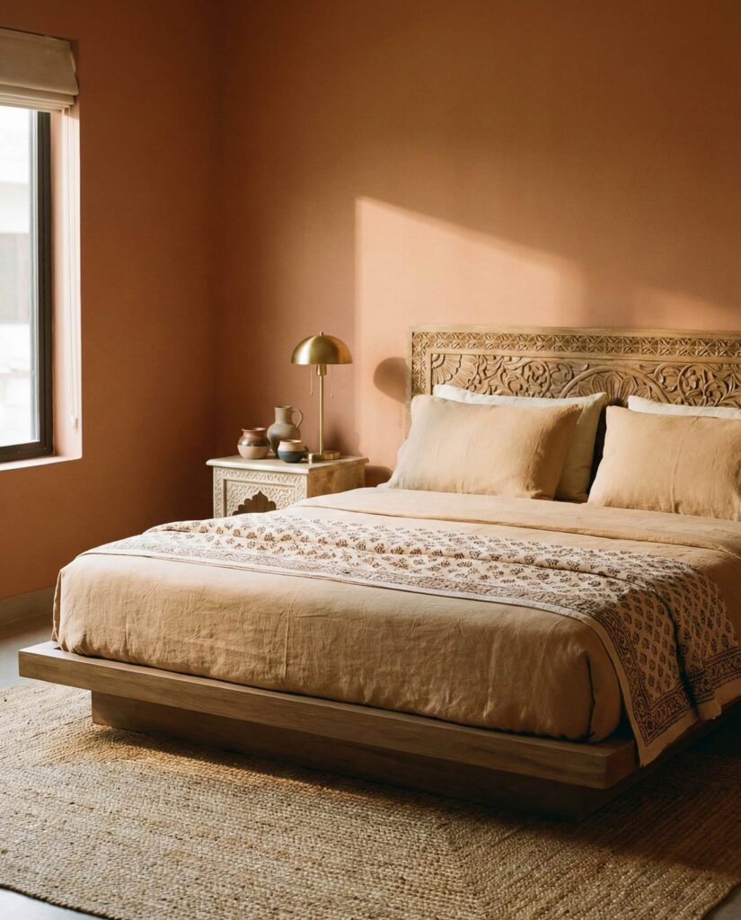 Incorporating Rajasthani elements into modern bedrooms reflects a growing appreciation for storytelling in design ideas. Think subtle arches, hand-block prints, or carved details used sparingly within a design modern master indian simple layout. This style works best when grounded in neutral tones, allowing heritage details to shine without overpowering. I’ve seen this approach resonate with homeowners who want cultural richness paired with modern comfort and Aesthetic clarity.