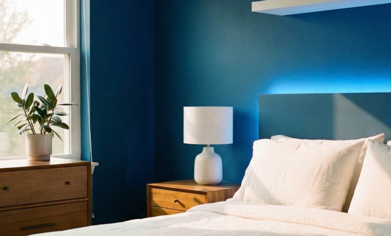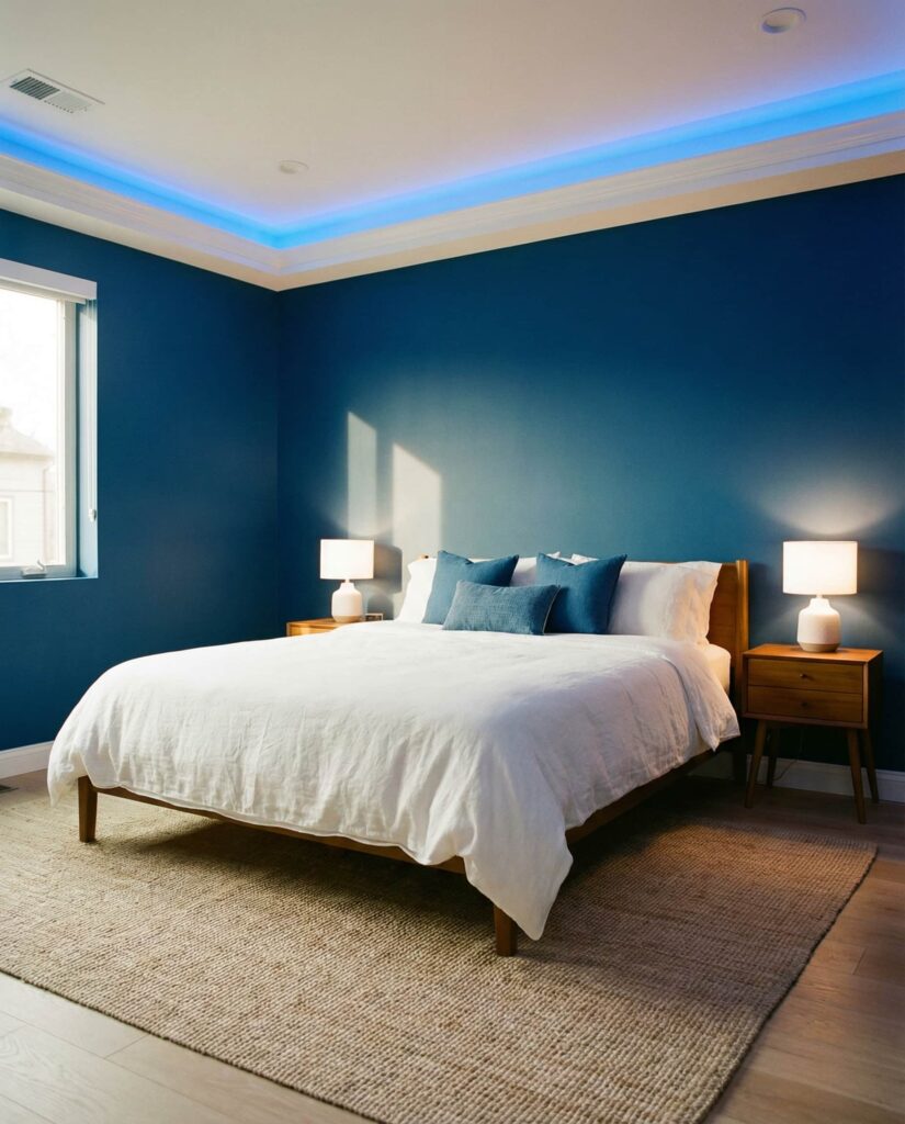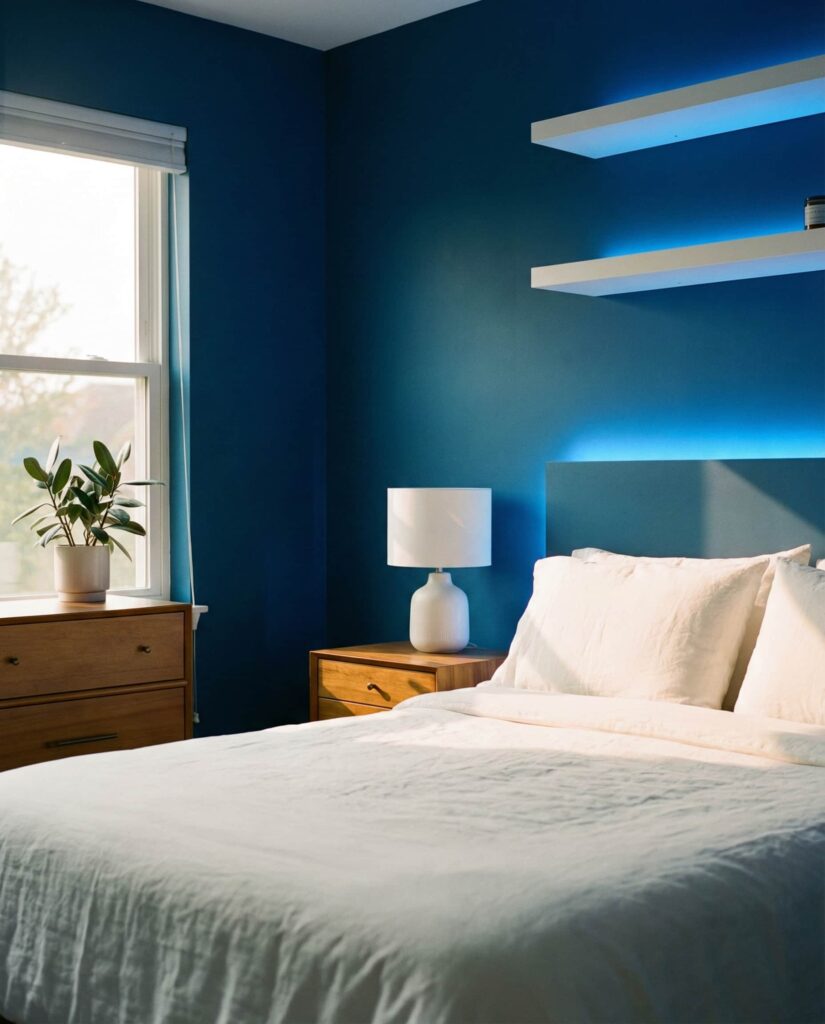 Soft Blue lighting is gaining attention for its calming psychological effect, especially in bedrooms with Blue walls. These Ideas focus on using cool-toned Ambient light in moderation to encourage rest while avoiding a cold feel. When paired with warm accent Fixtures, blue lighting creates a balanced, serene mood. Designers often recommend this approach for urban homes where visual calm is essential. The result is a restful space that feels thoughtful and intentional, offering subtle Inspiration without overpowering the senses.